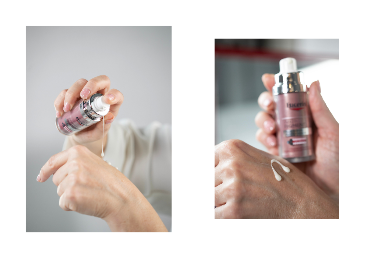 Iako je Ana kroz godine uspjela djelomično smanjiti hiperpigmentacije, one su još uvijek prisutne pa je s oduševljenjem dočekala priliku da testira Eucerin njegu. Kroz dva tjedna u rutinu je uključila Anti-Pigment dnevnu kremu sa SPF 30 te Anti-Pigment dvofazni serum.