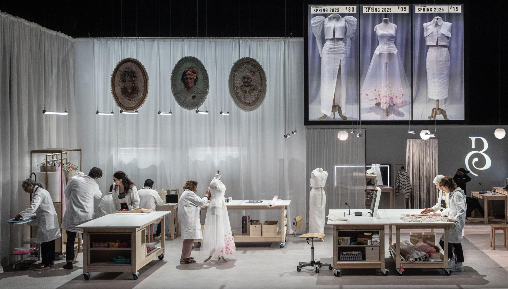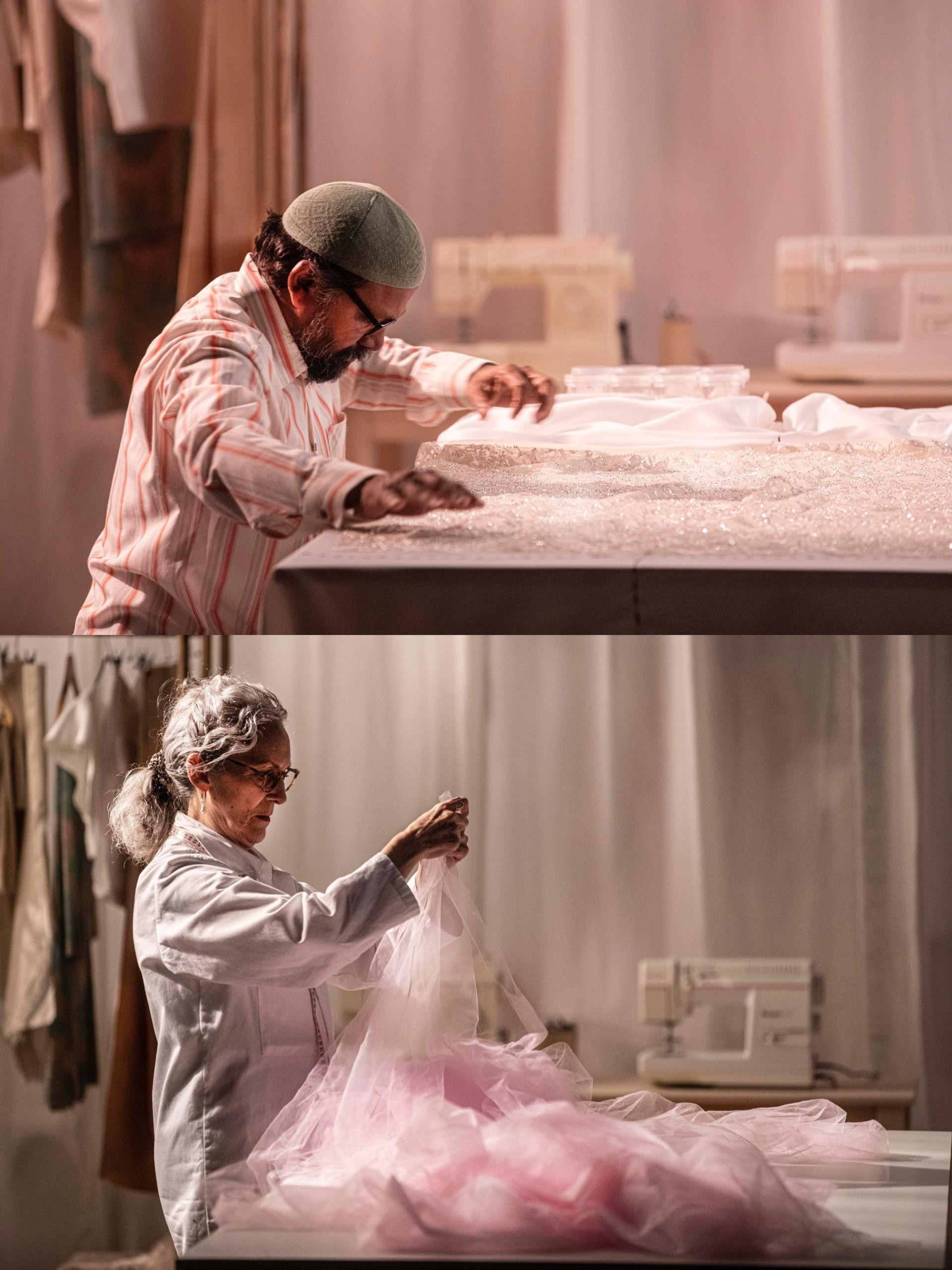 Predstava će ukazati na predani rad u tišini i potpunoj koncentraciji, na ruke neprocjenjivog umijeća tijekom osam mjeseci i tisuća sati rada na haljini predodređenoj da postane dio povijesti, skrivene pod strogim klauzulama povjerljivosti u skladu s kraljevskim protokolom i pravilima visoke krojačke umjetnosti da bi među skupocjenim materijalima i nitima izbilo nasilje, a tijela muškaraca i žena bila slomljena naporima.
