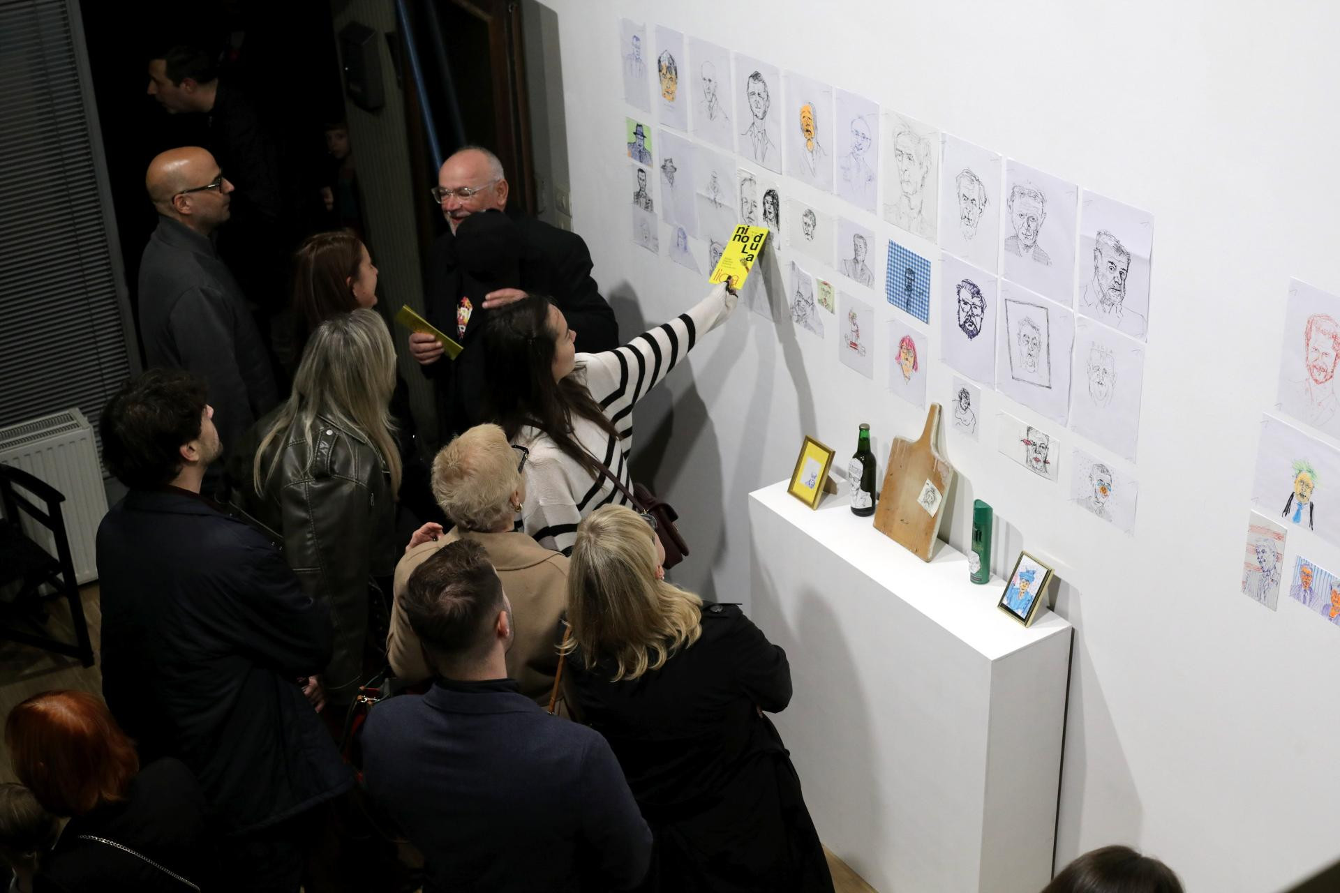Izložbu portreta hrvatskih i stranih političara poput Donalda Trumpa i Andreja Plenkovića te osoba iz javnog života poput Josipe Lisac, nacrtanih na papiru, ali i na novinskim člancima, računima, kao i priboru za jelo, nisu propustili slikari Nina Ivančić, Ivo Deković, Željko Lapuh, Zoltan Novak, Katarina Ivanišin Kardum te likovni kritičar Vanja Babić.