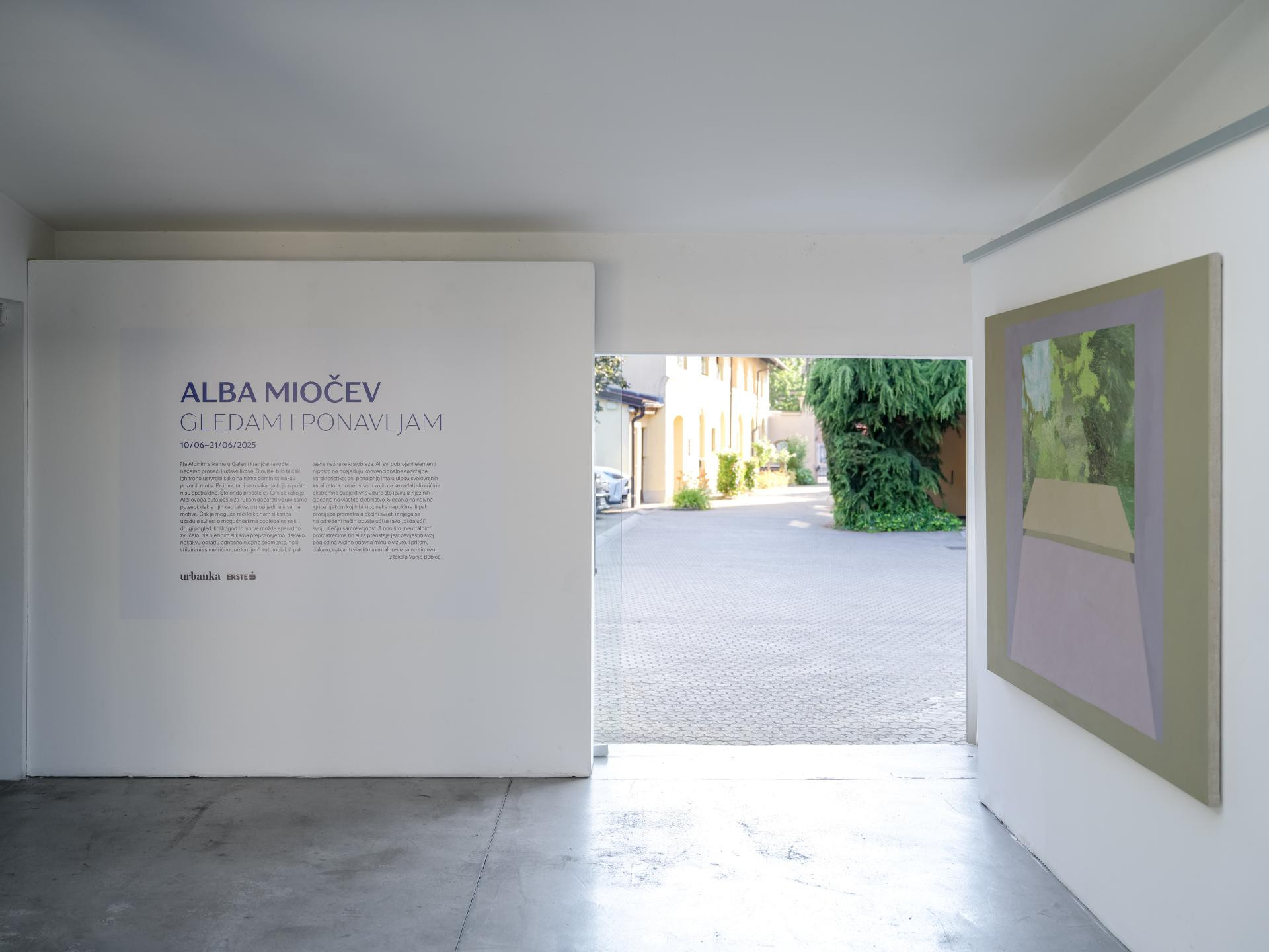 "Na tragu vlastite ideje i vizije s kreativnim iščitavanjem nekih već tijekom povijesti posve verificiranih postignuća, Alba Miočev i ovoga nas puta iznenađuje autentičnim, vizualno uvjerljivim te u osnovi problemski tretiranim slikarskim jezikom", piše Vanja Babić, pozivajući na razgled izložbe koja će biti otvorena do 21. lipnja.