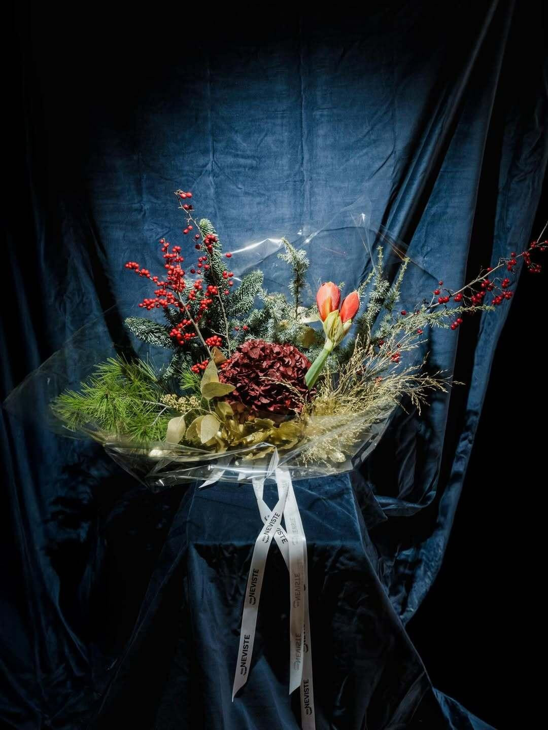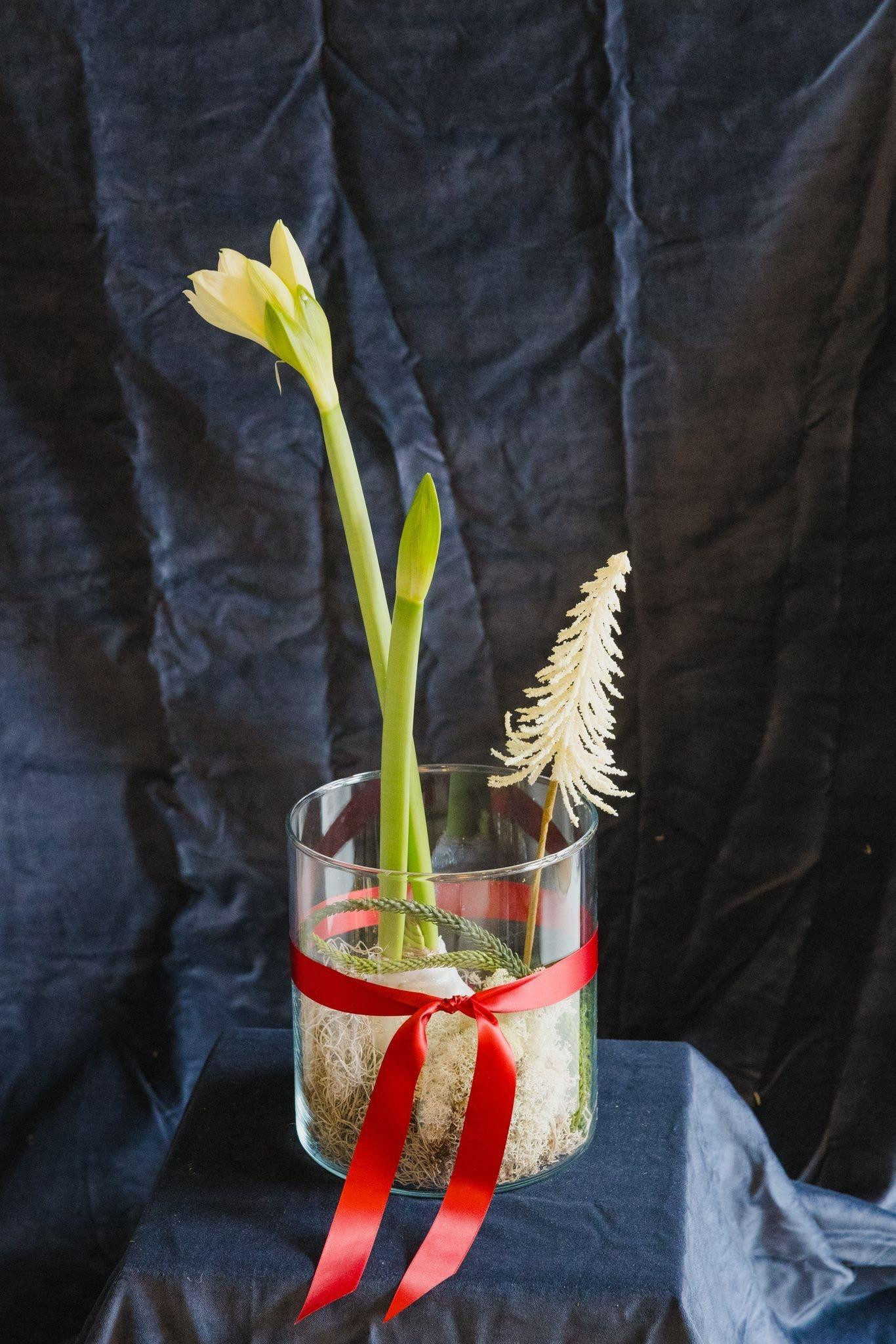"Božićni buket je inspiriran tradicionalnim blagdanskim bojama, ali iz suvremene perspektive. Volim unijeti malo neočekivanog, bilo kroz teksturu, bilo kroz cvijet koji nije tipično ‘božićni‘. Ideja mi je bila napraviti buket koji izgleda kao mala, ručno rađena priča. Topao, bogat, ali i dalje elegantan", govori Krunoslava i dodaje da je ideja za amarilis u staklenci pak došla iz želje da ponudi ljudima jednostavan prijedlog za poklon.