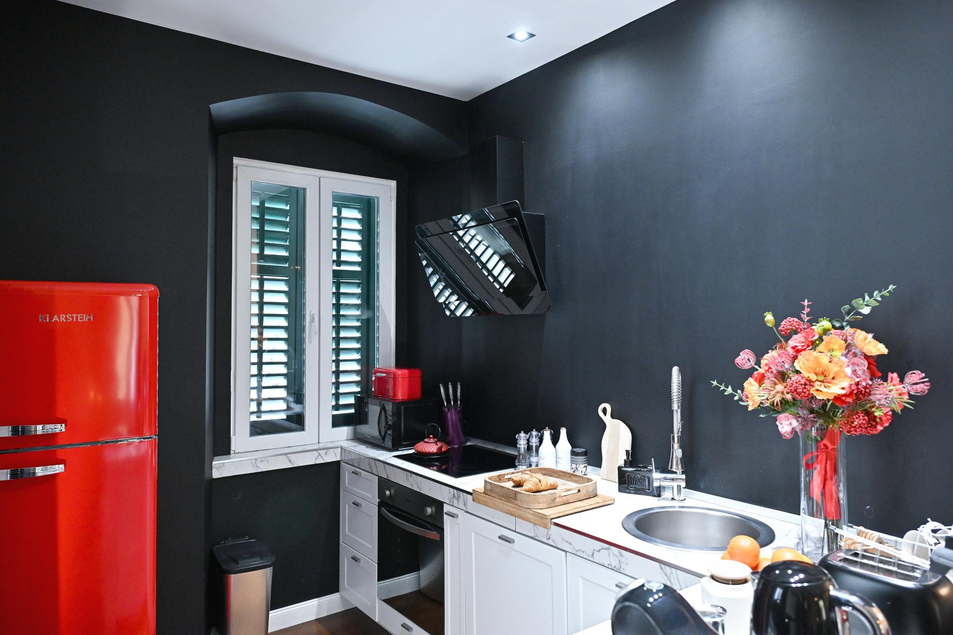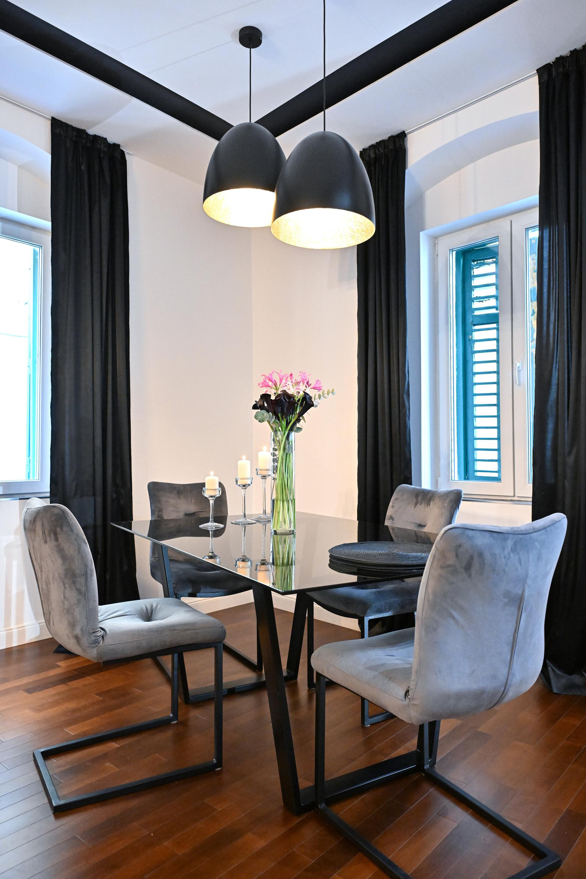 "Uređivanje stana trajalo je nekoliko mjeseci i odvijalo se bez ikakve žurbe. Htjela sam prostoru dati karakter, ali istovremeno zadržati toplinu i osjećaj doma. Kombinacija tamnijih tonova, crnih detalja, crvene boje i zlatnih akcenata došla je potpuno prirodno. Volim prostore koji imaju stav, koji su vizualno snažni, ali i dalje ugodni za svakodnevni život. Boje nisam birala prema trendovima, već intuitivno, prema osjećaju i atmosferi koju sam željela postići", objašnjava Marijana, dodajući kako inspiraciju pronalazi na putovanjima i u interijerima koji su joj ostali u posebnom sjećanju. Možda i najposebniji dio stana su ogledala koja su u potpunosti zamijenila klasična vrata.