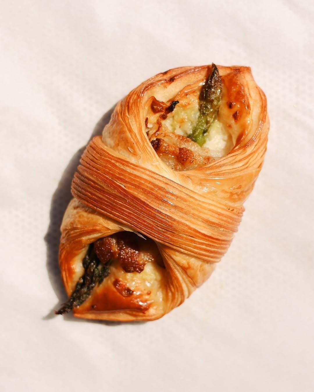Hrskavo pecivo punjeno je bogatim bešamel umakom, slanim kozjim sirom, aeromatičkom pancetom i, naravnom, neizostavnim svježim šparogama koje, kažu iz zagrebačke pekarnice, svakodnevno nabavljaju od lokalnih proizvođača.