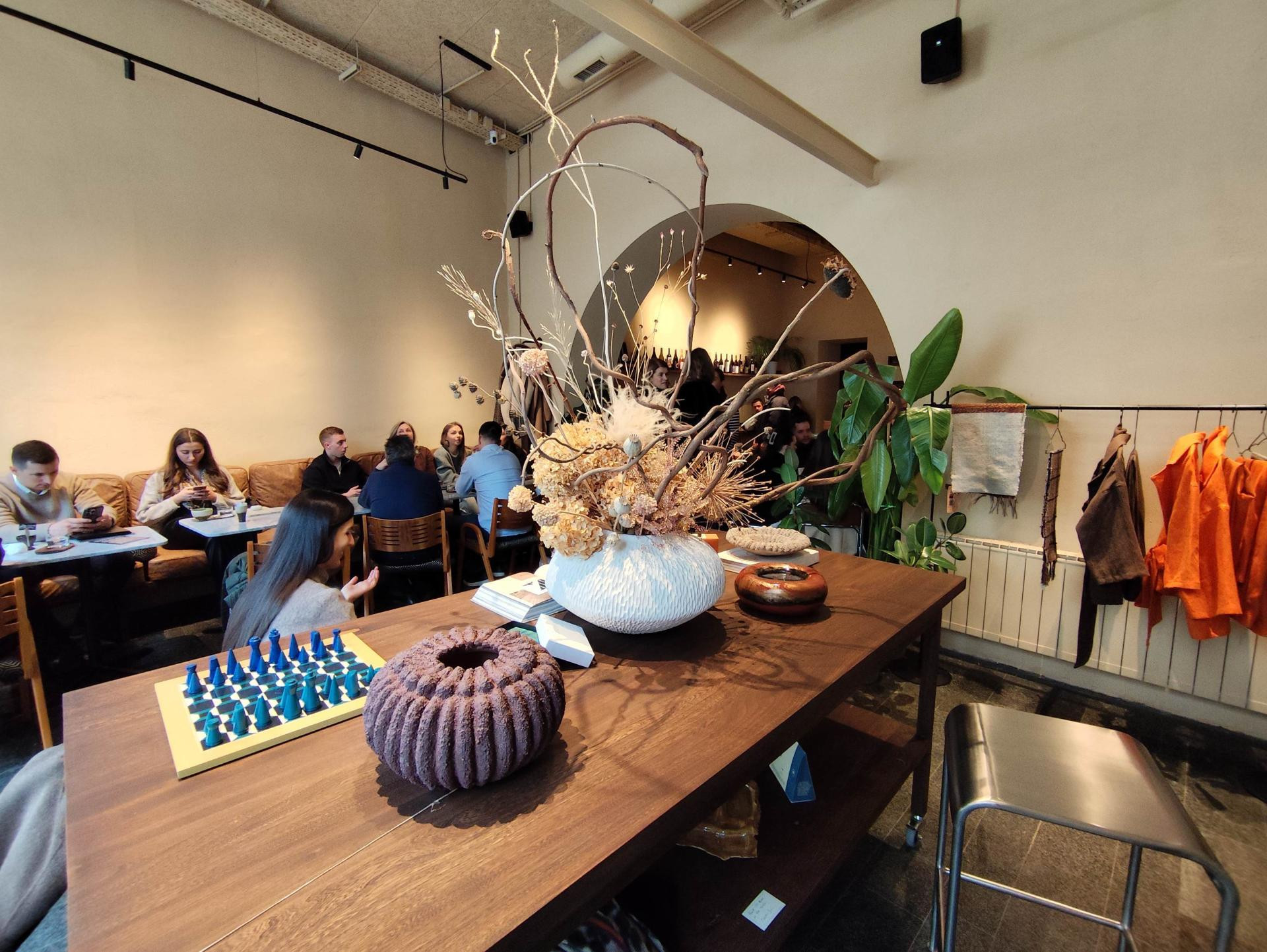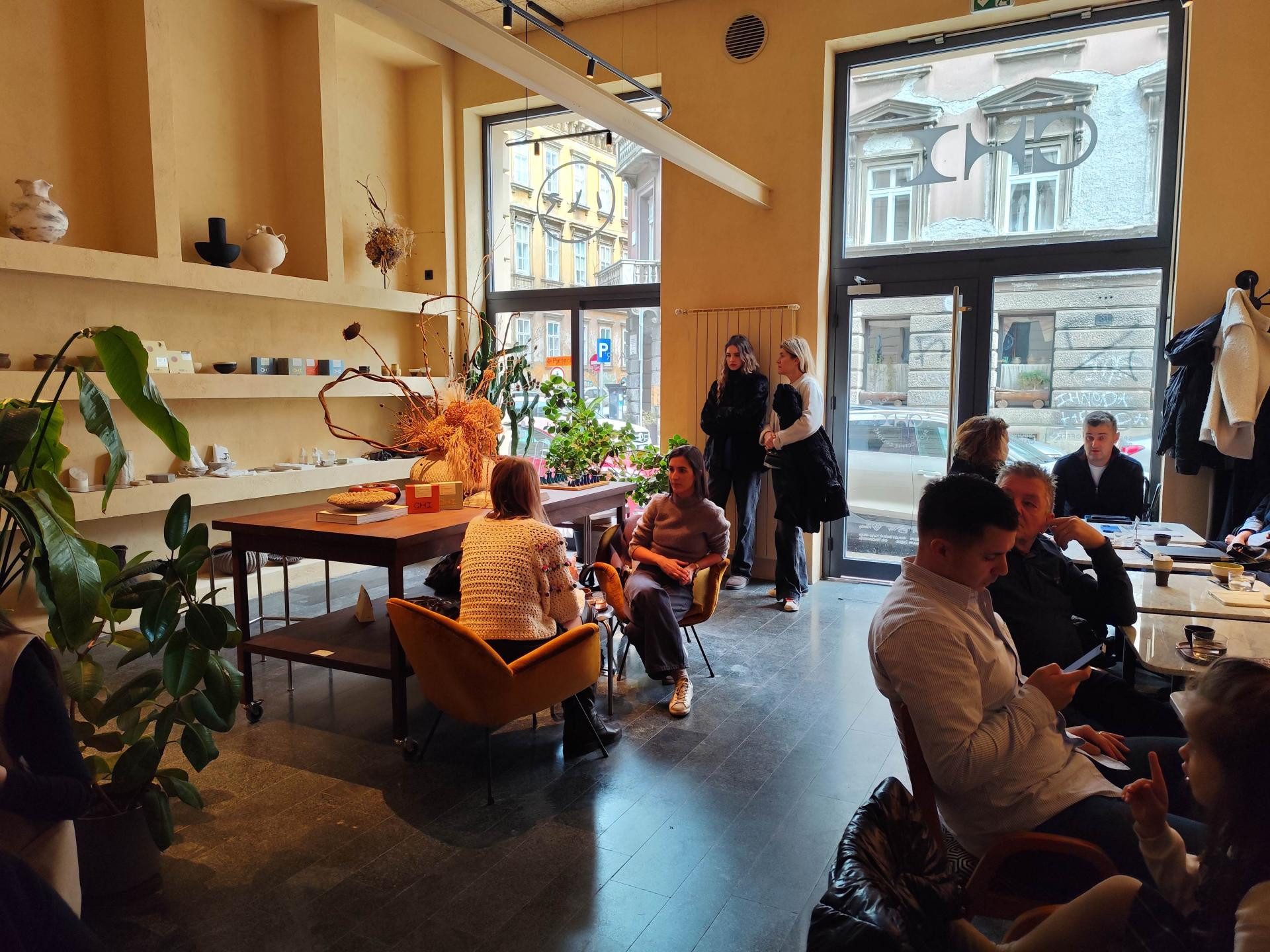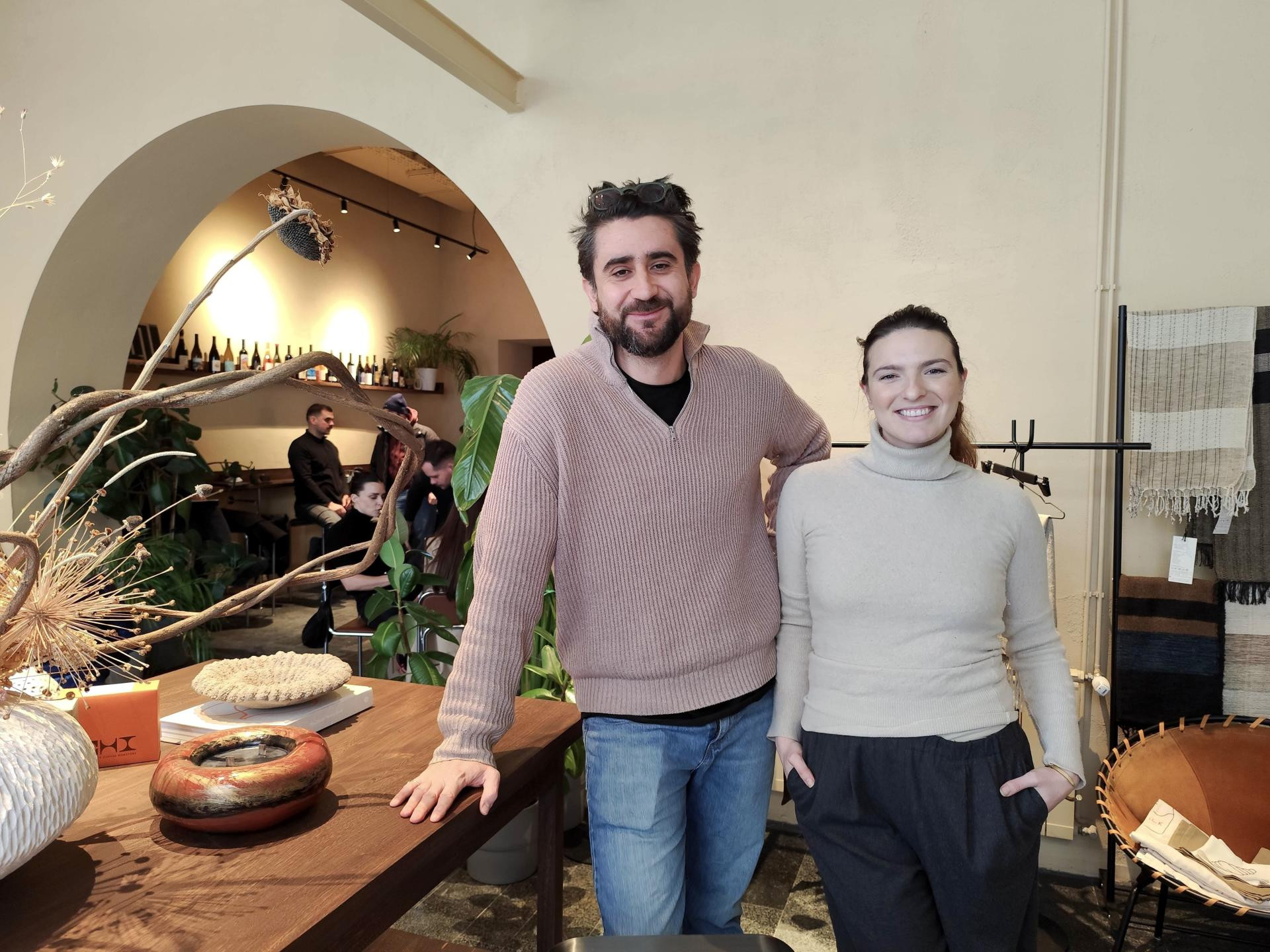 Estetika prostora jednako je promišljena kao i ponuda. Zoja priznaje da je željela izbjeći hladni minimalizam. “Nisam htjela prostor od stakla i metala. Htjela sam toplinu, teksturu, mediteranski osjećaj.” Inspiraciju su pronašli u Portugalu, gdje su jedno vrijeme živjeli. Nijanse terakote, police u zidu, veliki kaktus – sve suptilno podsjeća na jug. Dio prostora je galerija, u prvom dijelu s velikim uličnim prozorima nalazi se i veliki drveni stol koji je Zoja zamislila kao izložbeni dio, no u samo dva dana gosti su ga pretvorili u community stol. ‘‘Ljudi žele biti tu, oko njega i zapravo je dobio novu funkciju. Nama ne smeta, ni to je ljepota da prostor živi s ljudima”, kaže Zoja.