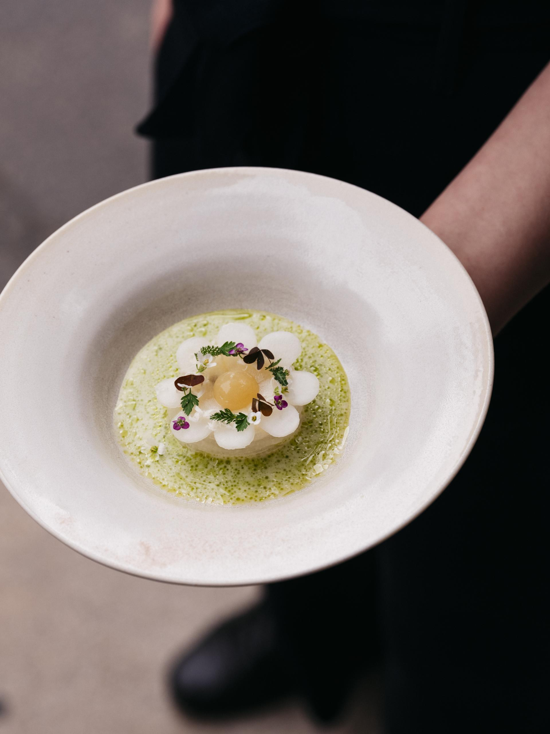 U elegantnom interijeru TIAN-a, koji spaja minimalizam i bečku profinjenost, poslužuju se degustacijski meniji od sedam ili devet sljedova. Svako jelo više je meditacija o prirodi nego puka hrana – primjerice, tartar od cikle, dimljeni žumanjak s hrskavim keksima od bjelanjka, varijacije od repe s fermentiranim uljem ili „zemlja i voda“ – tanjur u kojem korjenasto povrće i alge simbolično predstavljaju sklad biosvijeta iz kojeg dolaze.
