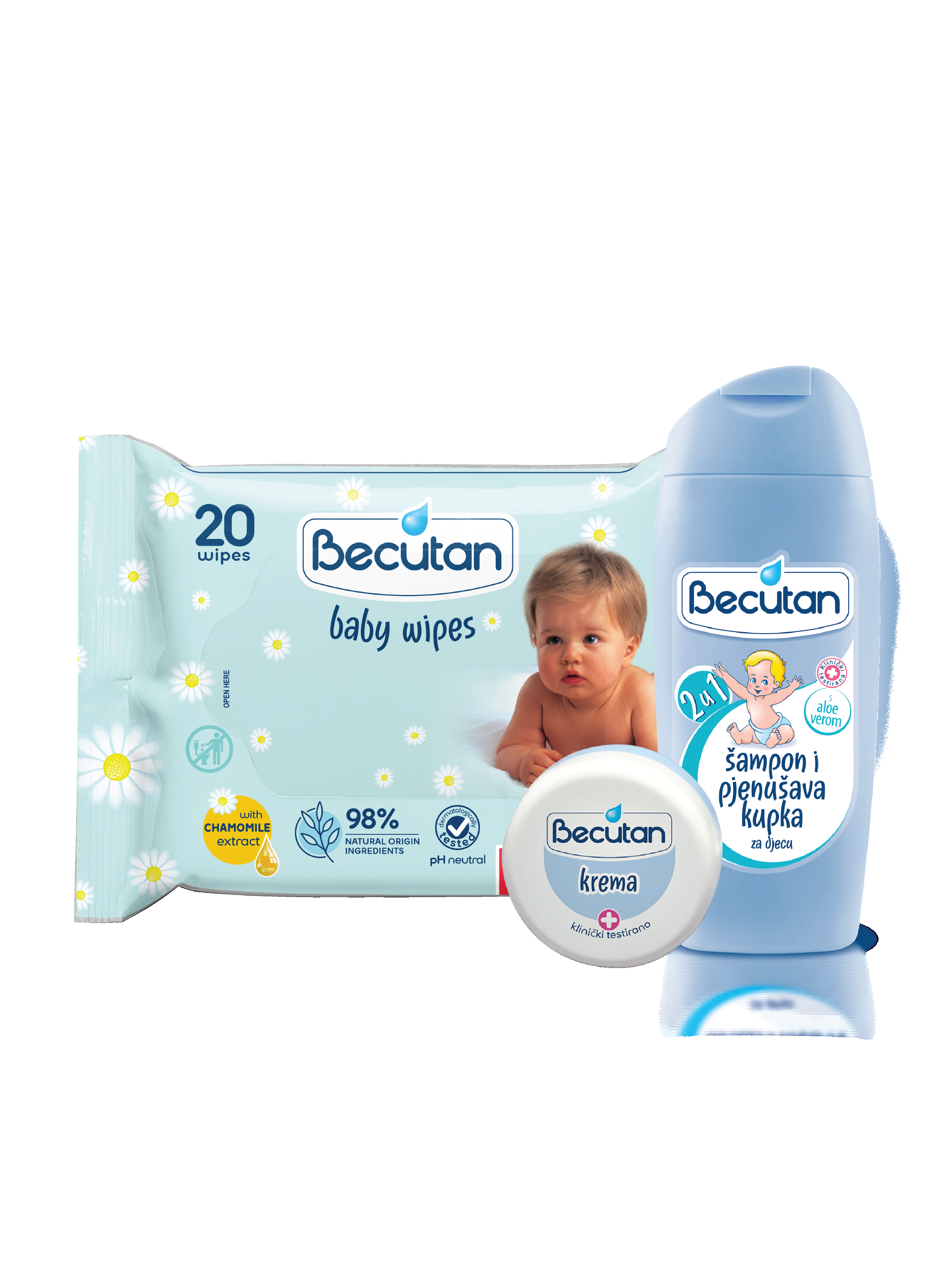 Upravo su Becutan proizvodi, razvijeni za tu namjenu i u potpunosti prilagođeni za cjelokupnu njegu i zaštitu vaših mališana. Nepogrešiva kombinacija Becutanovih proizvoda za njegu i zaštitu bebine kože.