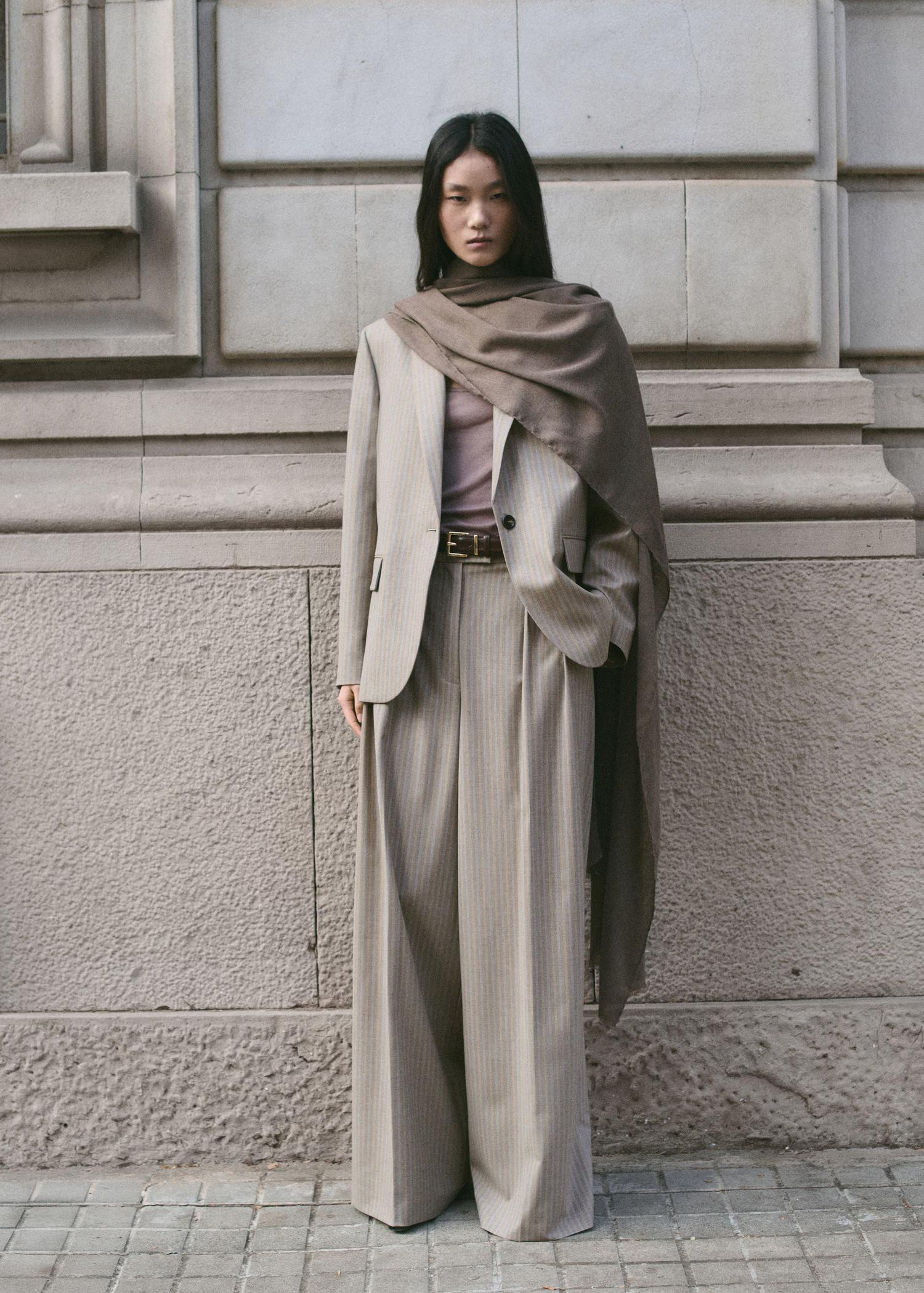 Naime, oversized odijelo od mješavine vune dolazi u zanimljivoj svjetlosmeđoj boji s tankim prugicama u tamnijoj nijansi smeđe i nježnoj plavoj, što ga čini ipak nešto zanimljivijim od klasičnih smeđih opcija. Ove godine upravo je kombinacija smeđe i plave jedna od omiljenih koje nosimo, pa nas je ovo odijelo tim više osvojilo.