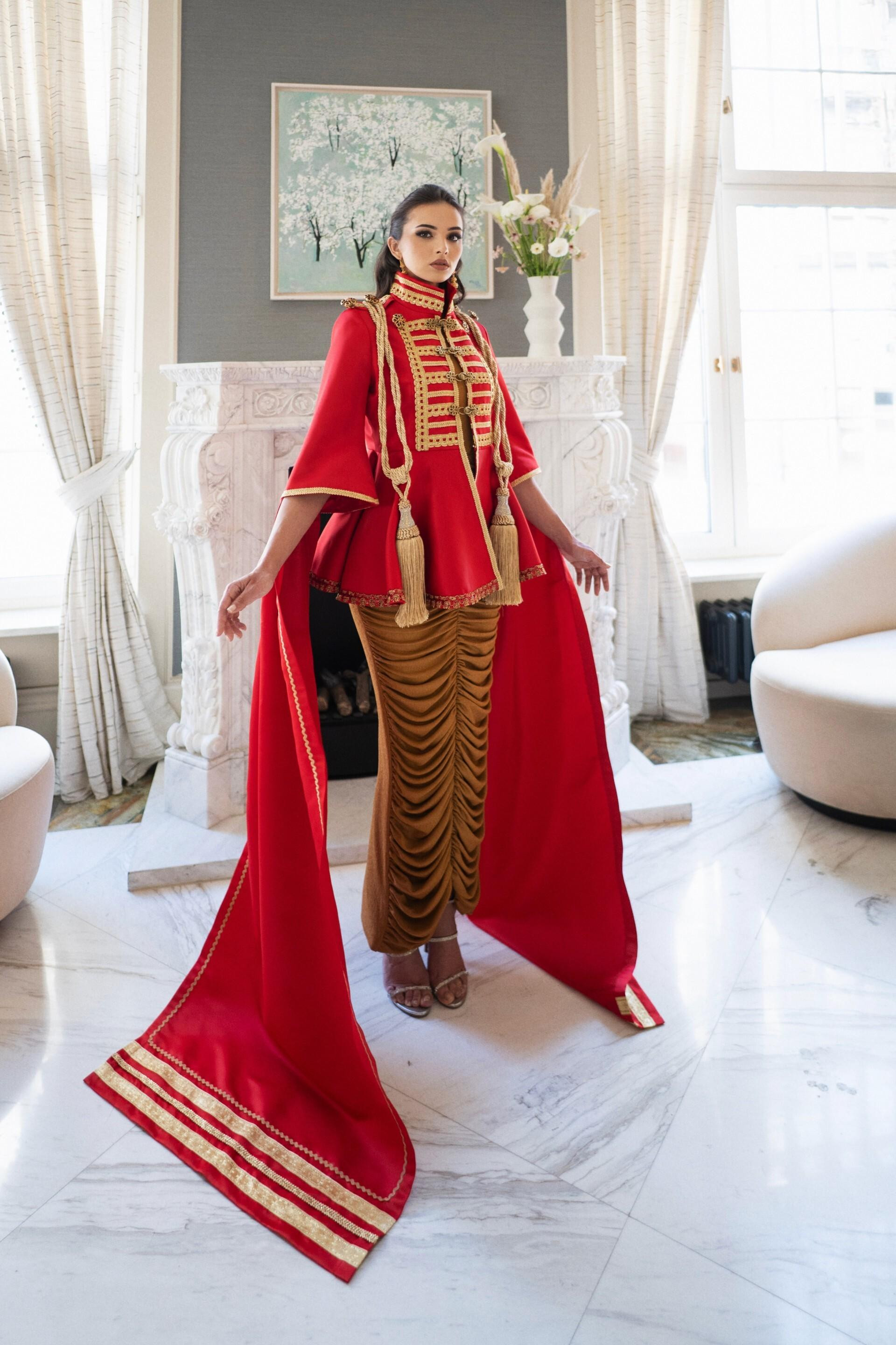 "Materijali koji su se koristili za izradu kostima u doba vladavine kralja Tomislava su velvet, pamuk i svila. Također, te materijale sam koristila pri izradi haljine, odnosno ogrtača. On je ukrašen hrvatskim pleterom, 50 metara trake je korišteno prilikom izvedbe. Radilo se pedeset sati na samom ukrašavanju", objašnjava Marina. S obzirom da je tematika vezana uz kralja Tomislava, njegova imenjakinja, Tomislava bila je, kaže Marina, apsolutno oduševljena cijelom idejom i pričom koja stoji iza haljine.