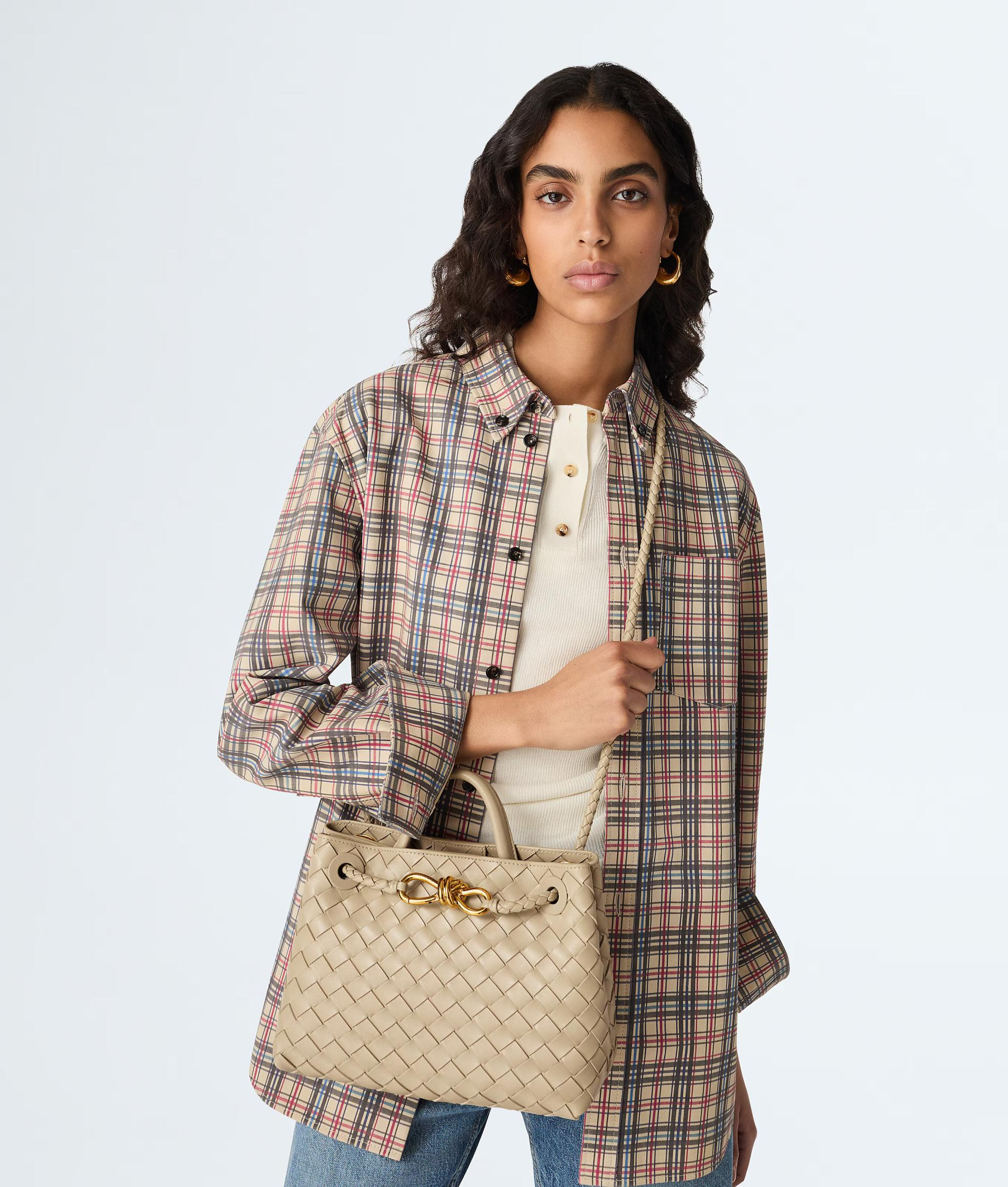 U pitanju je torba luksuznog talijanskog brenda Bottega Veneta, model Small Andiamo u nijansi ecru. Inače, ovu torbu nosile su i Kylie Jenner i Hailey Bieber kao i Jacob Elordi. Napravljena od janjeće kože, dolazi s prepoznatljivim isprepletenim uzorkom koji je postao svojevrstan zaštitni znak ove modne kuće. Iako je kraljičina manjih dimenzija, torbica ima malu ručkicu zahvaljujući kojoj se može nositi u ruci, kao što je to napravila i Camilla, ali dolazi i s dugačkim remenom.