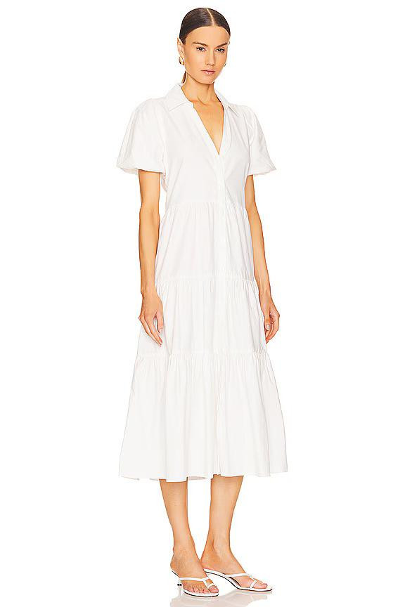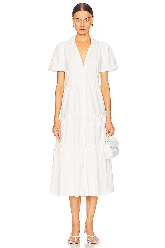 Havana haljina kultni je komad brenda: slojevita suknja u volanima i puf rukavi daju joj izraženu ženstvenu notu, dok ovratnik s V-izrezom i prednje kopčanje dodaju dozu elegancije i svestranosti. Dizajnirana je da se nosi sa ili bez remena, a Meghan je odabrala potonje.