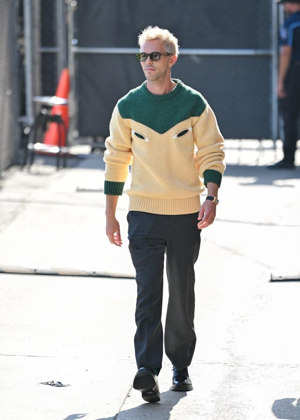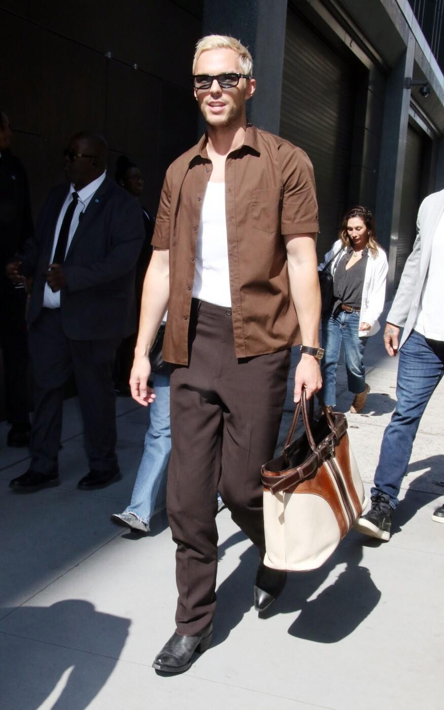 Nicholas je tako odlučio svoju tamnu kosu, po kojoj ga obožavatelji pamte još dok je bio dječja glumačka zvijezda, zamijeniti platinastim tonovima. Na ulicama Manhattana, Hoult je izgledao gotovo neprepoznatljiv u nekoliko različitih modnih izdanja. Najprije se pojavio u smeđim hlačama od odijela i svijetlom puloveru, zatim je viđen ispred studija ABC u ležernijem izdanju s bijelom potkošuljom i bež košuljom kratkih rukava, a dan je završio u bijeloj kombinaciji koja je istaknula njegovu fit figuru – u bijelom prsluku s džemperom prebačenim preko ramena. Ipak, ono čime je najviše plijenio pozornost njegova je novi imidž.