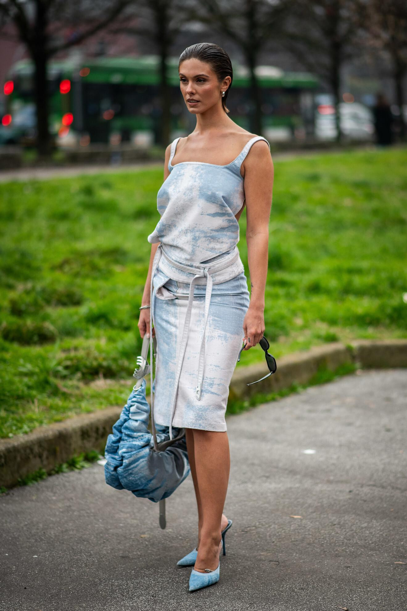 Trend koji Talijanke ovih dana posebno rado nose jest ženstvena slip estetika. Lagani, fluidni materijali koji nježno prate liniju tijela, topovi tankih naramenica i suknje lepršavog kroja dominiraju street style scenom. Minimalističke siluete u neutralnim tonovima izmjenjuju se s modelima inspiriranima donjim rubljem, poput korzetiranih topova, a rezultat su kombinacije koje su istovremeno profinjene i suptilno senzualne.
