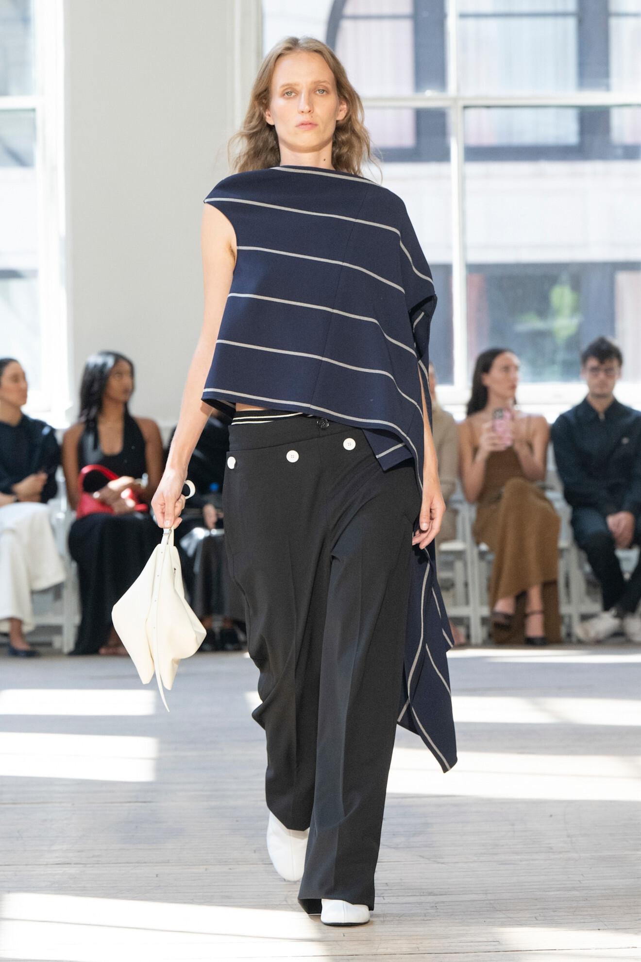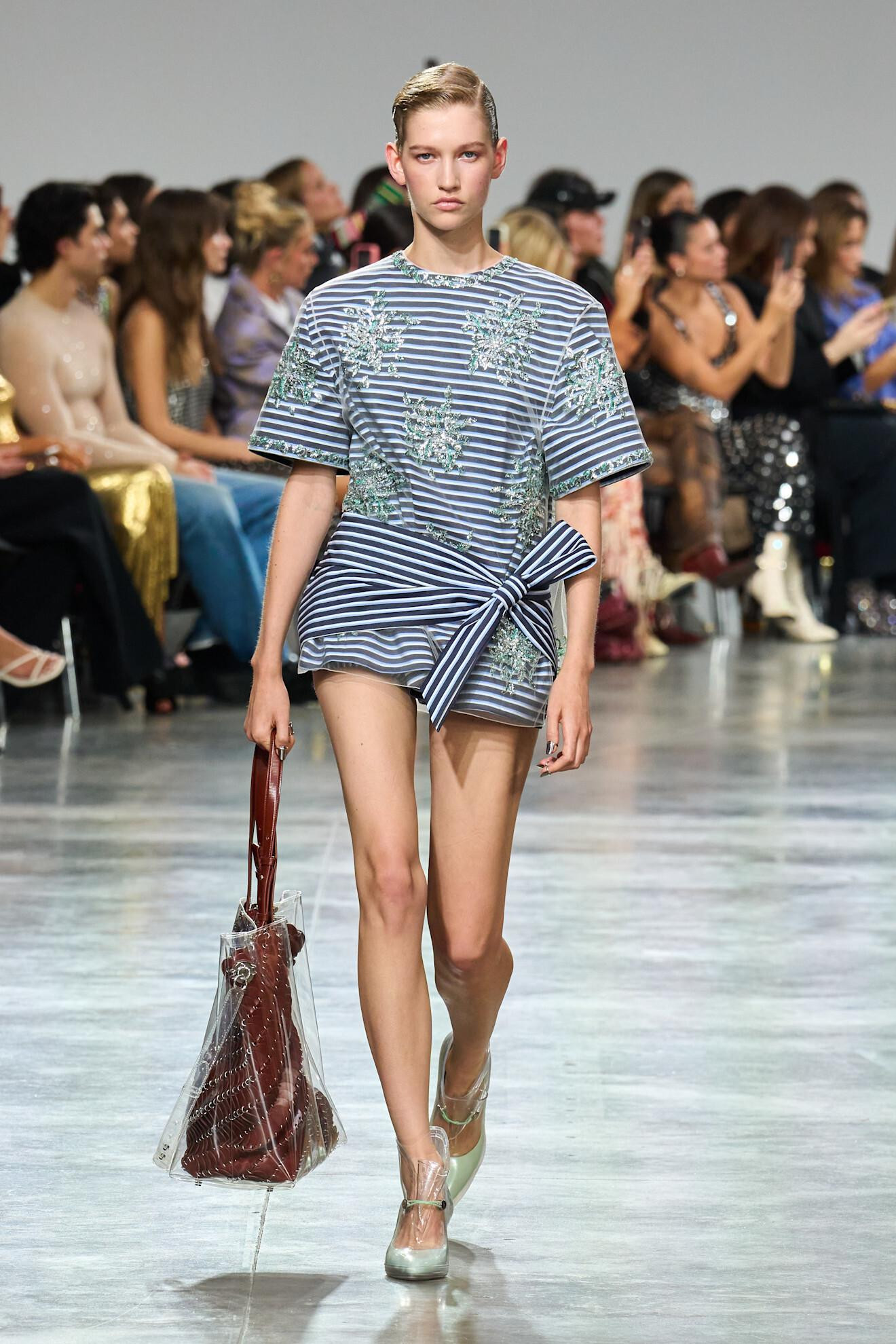 Tako su u kolekcijama za proljeće/ljeto 2025., modne kuće Proenza Schouler, Rabbane i Prada istaknule upravo prugasti uzorak kao jedan od ključnih vizualnih motiva sezone. I dok je Proenza Schouler predstavila prugice u suvremenoj i kreativnoj interpretaciji – kroz asimetrične krojeve, teksturirane tkanine i resaste rubove, Prada je unijela elemente nautičke elegancije, koristeći klasične marinière prugice koje povezuju pomorsku tradiciju s modernim dizajnom.