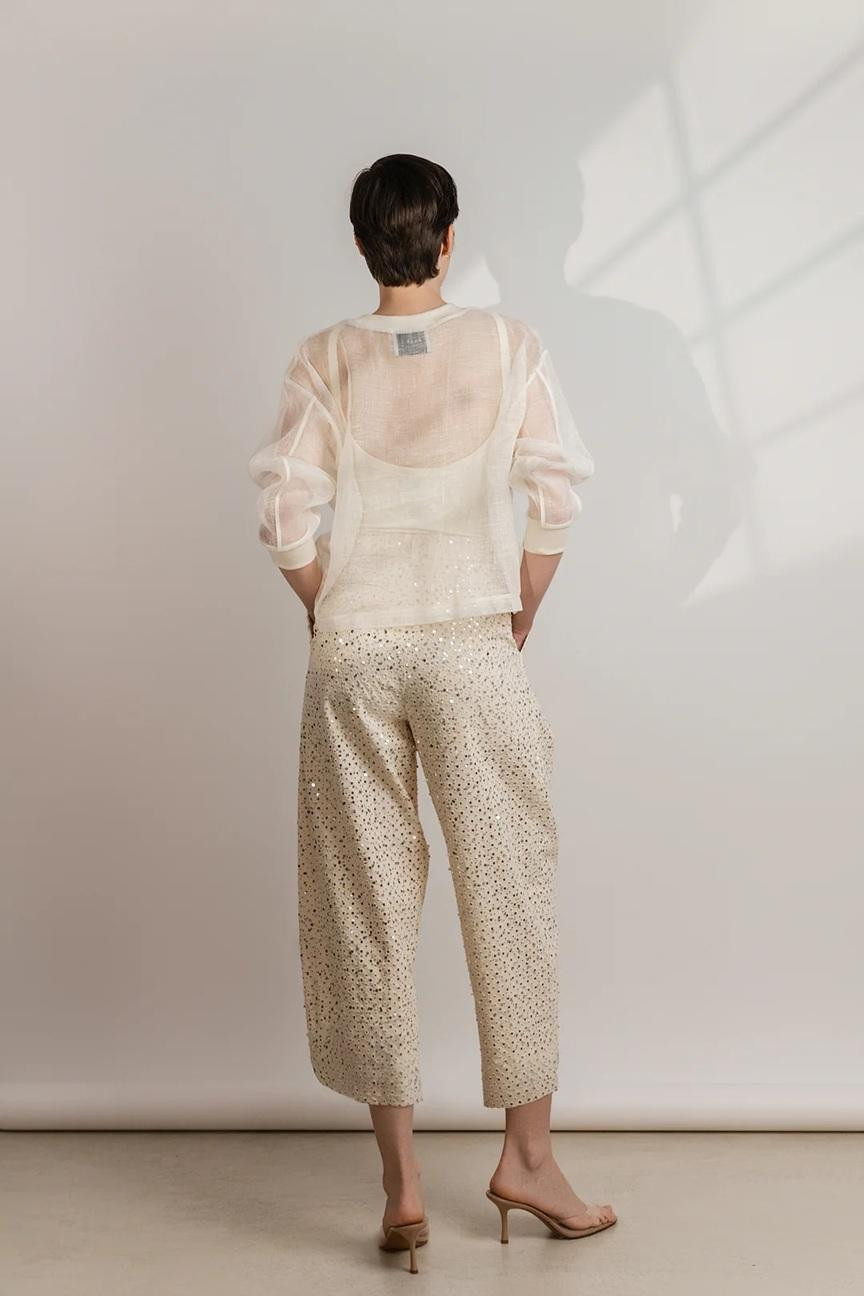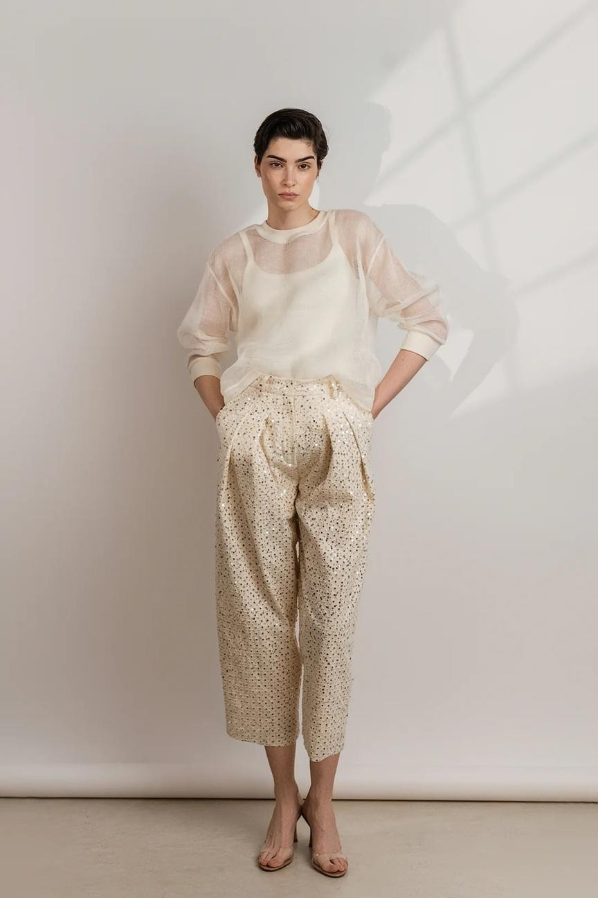 Modni brend A‘MARIE potpisuje hlače sa šljokicima i pokazuje nam kako ih možemo nositi i u dnevnim varijantima, a ne samo u svečanim prigodama i večernjim izlascima.
