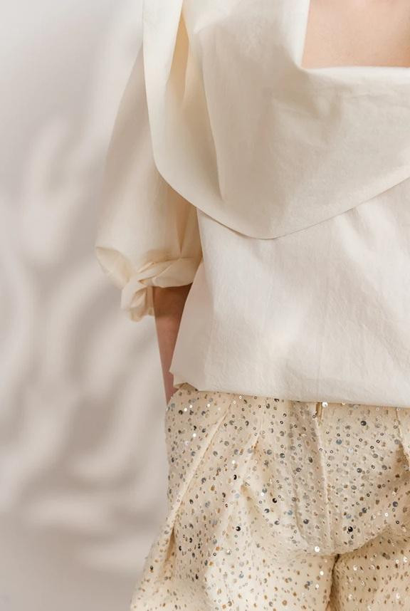 Riječ je o modelu Jai koji definira suptilni sjaj koji se kreće s tijelom. Šljokice nježno hvataju svjetlost, dok fluidna silueta održava osjećaj lakoće i decentne elegancije. Sašivene su od stopostotnog pamuka, a dostupne su i web trgovini brenda po cijeni od 340 eura.
