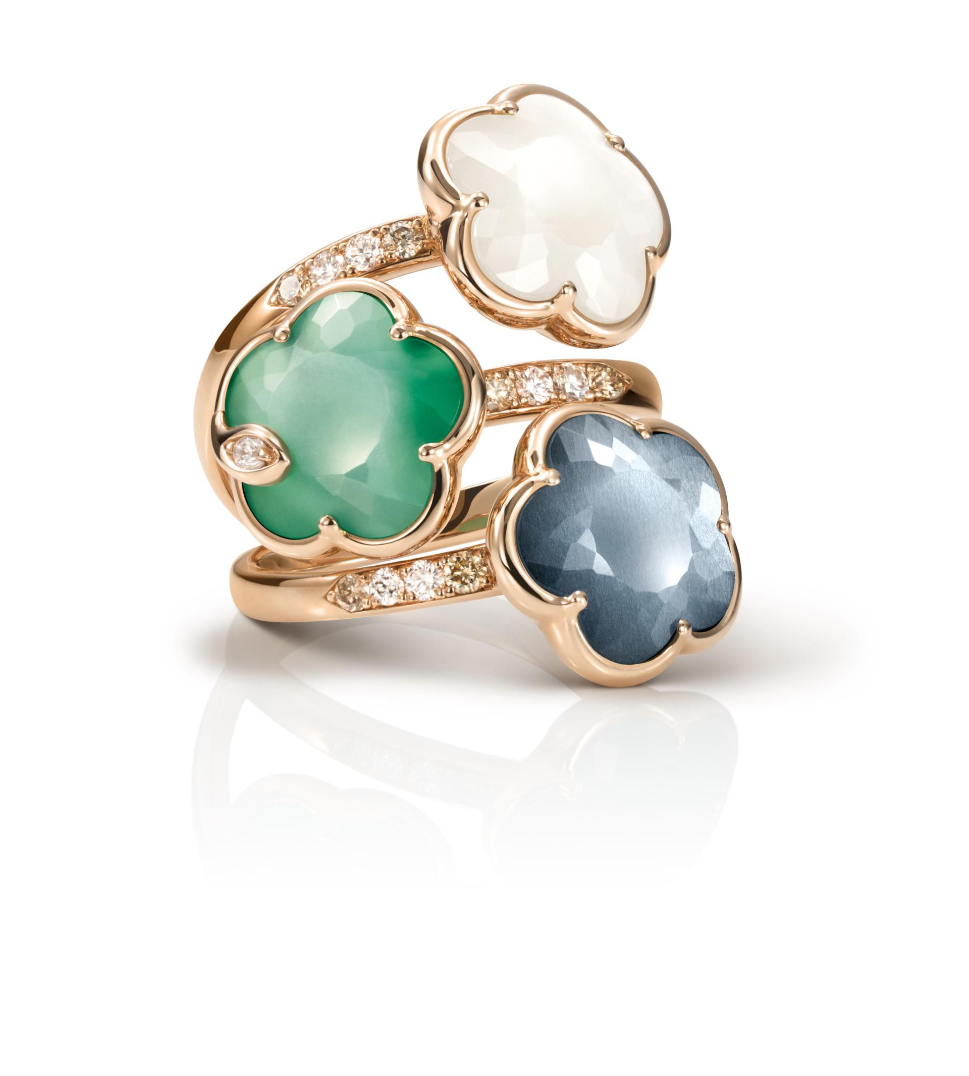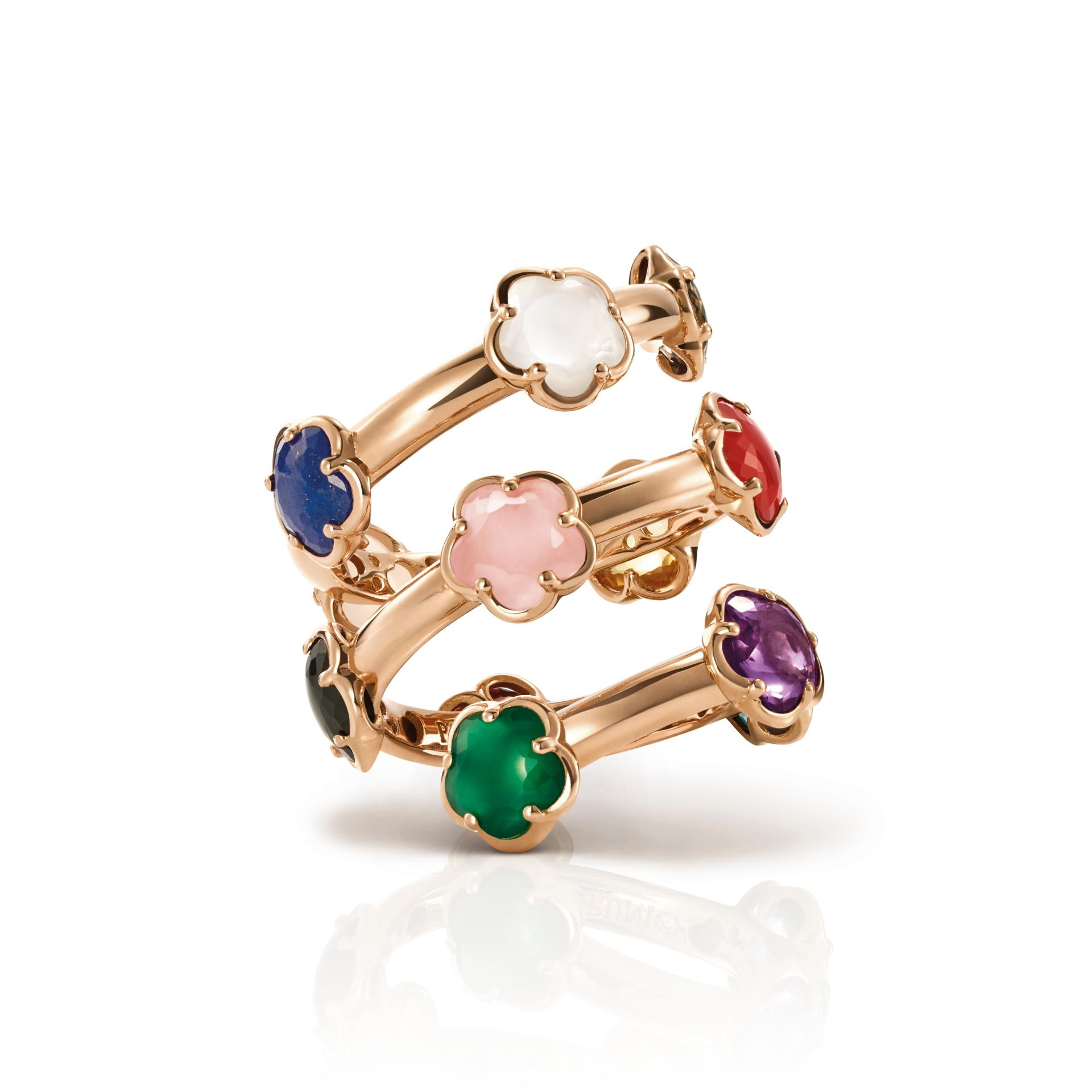 Jedna od najpoznatijih linija kuće svakako je Figlia dei Fiori (u prijevodu Kći cvijeća), koja predstavlja ikonični cvijet s pet latica. Kolekcija obuhvaća ogrlice, narukvice, naušnice i prstenje te koristi paletu prirodnih dragih kamenja: rozenkvarc, crveni granat, tirkiz, oniks i zeleni ahat. Svaki kamen odabran je zbog svojih estetskih i simboličkih svojstava - od energije ljubavi i strasti do harmonije i jasnoće.