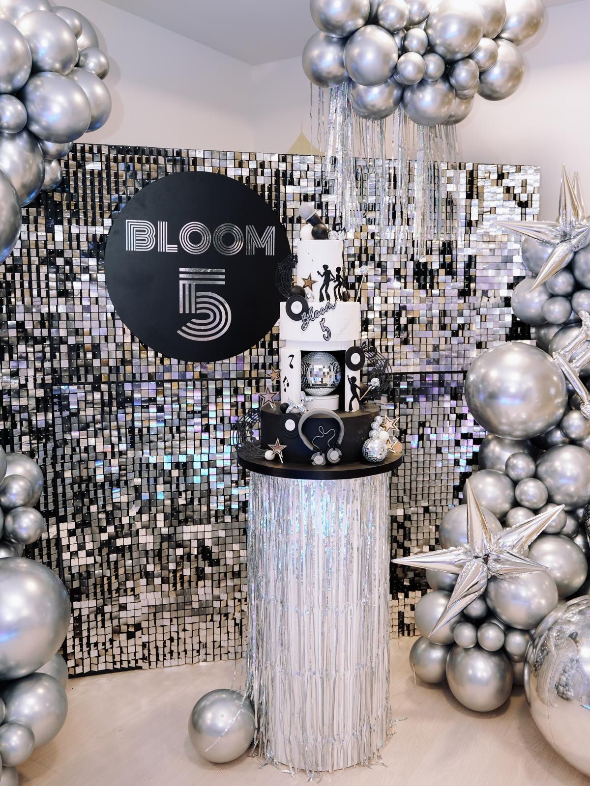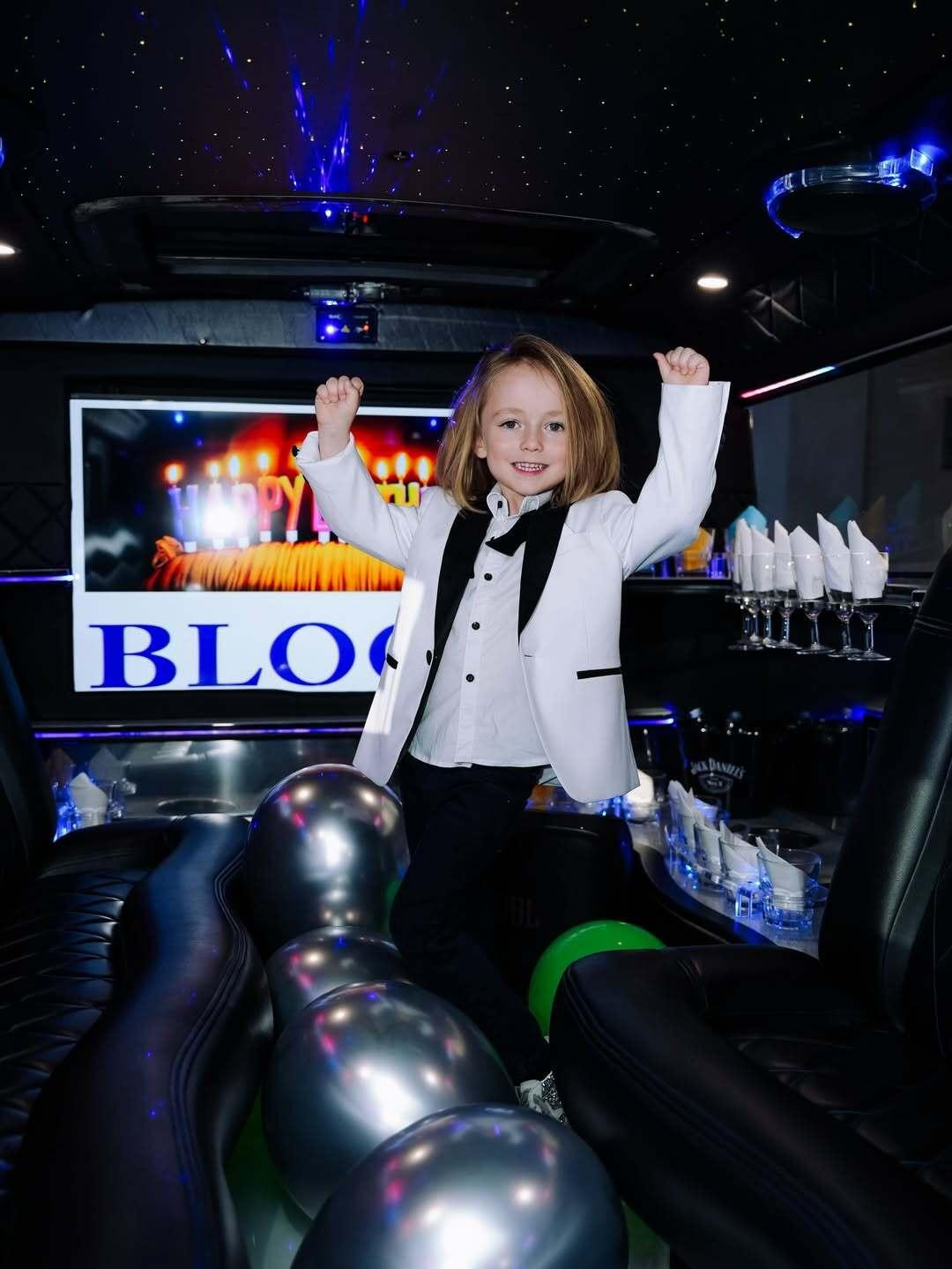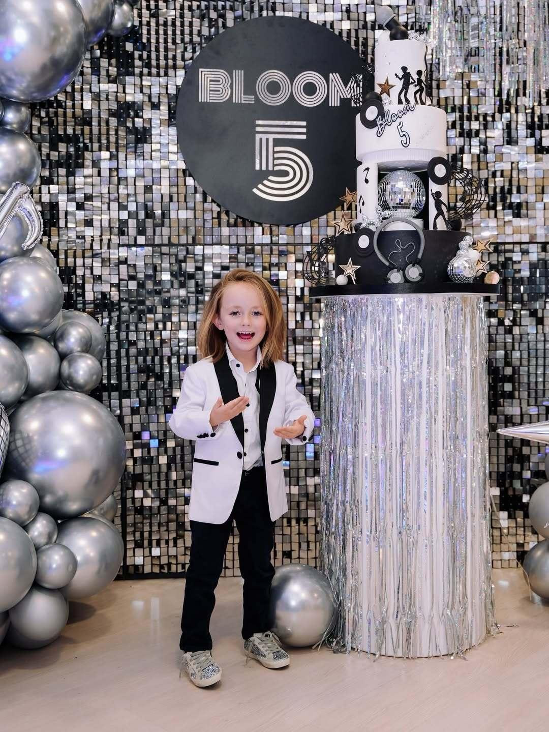 Bloom je rođendan proslavio u ponedjeljak ujutro, a na proslavu u igraonici Little Stars by Nina stigao je u tamnoplavom Hummeru s personaliziranim natpisima svojega imena. I kad je stigao, na fotografijama vidimo da je bio u potpunosti oduševljen. Tema je bila Groznica subotnje večeri pa je prostor dekoriran s beskrajno mnogo srebrnih detalja - konfeta, balona i resica, a torta na tri kata ukrašena disco kuglom, siluetama koje plešu i notama.