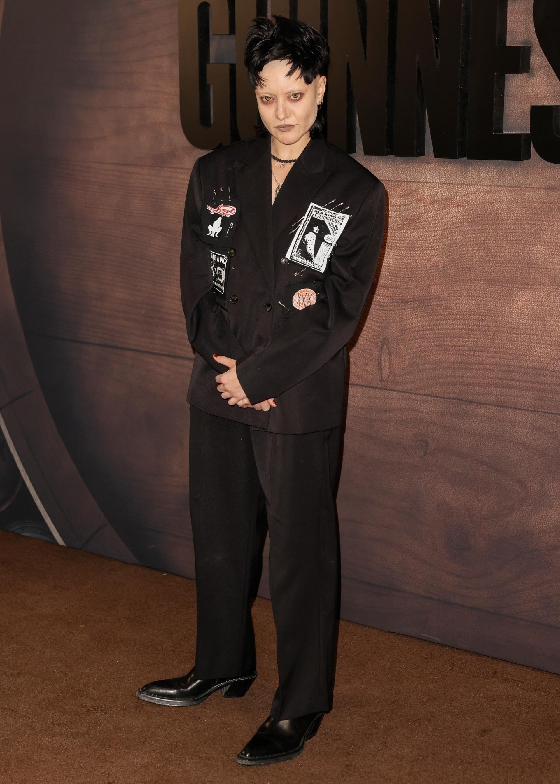 Odijelo je pak odabrala nositi i Celeste Guinness (35), nasljednica pivovare. No, njezino je odijelo bilo itekako drugačije. Oversized crno satensko odijelo ukrasila je punk motivima kao što su sigurnosne igle i prepoznatljive Guinness ilustracije. Njezin je stil dodatno došao do izražaja zbog raščupane kratke mullet frizure, a u jednom je trenu prilikom poziranja i otkopčala odijelo te pokazala da ispod ne nosi - ništa.