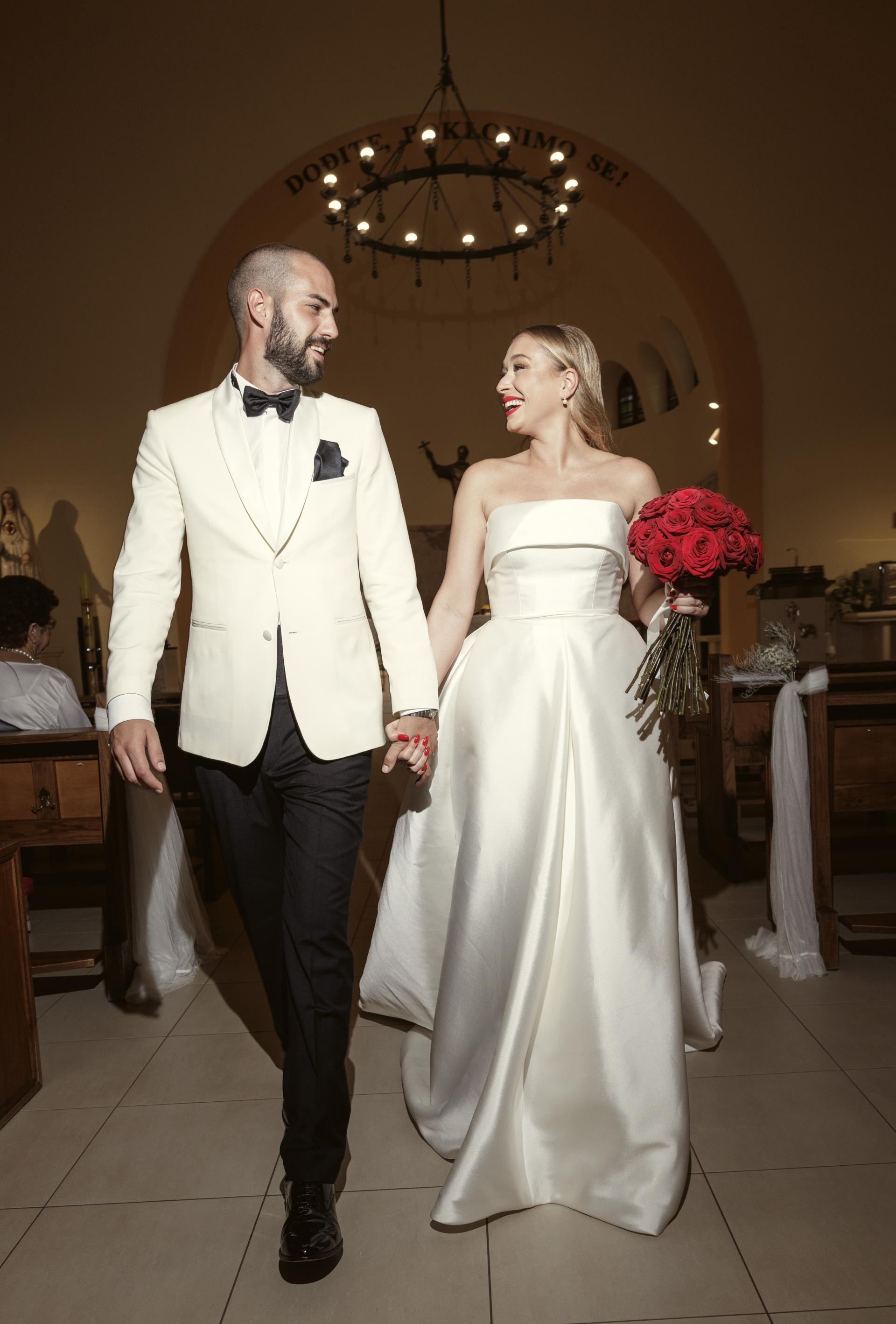 Ulazak u bračnu luku obilježili su valcerom, za koji ih je pripremila Helena Janjušević, uz zvuke Šostakovičeva Waltza No.2. "Htjeli smo da prvi ples bude klasičan, potpuno suprotan energiji koja je uslijedila nakon njega", kažu. Lucija je zablistala u vjenčanici brenda House of St. Patrick iz salona I Do Weddings. “U haljinu sam se zaljubila na prvi pogled, a u salonu su ispunili svaku moju želju oko izrade konačne verzije. Cipele Stelle McCartney pronašla sam u zadnji tren, a riječ je o retro modelu koji me potpuno oduševio. Posebnu vrijednost imali su i komadi nakita: bakin prsten i naušnice koje su obiteljsko nasljeđe”, otkriva. Pažnju je privukao i buket od crvenih ruža, kreacija Tulip Studija.