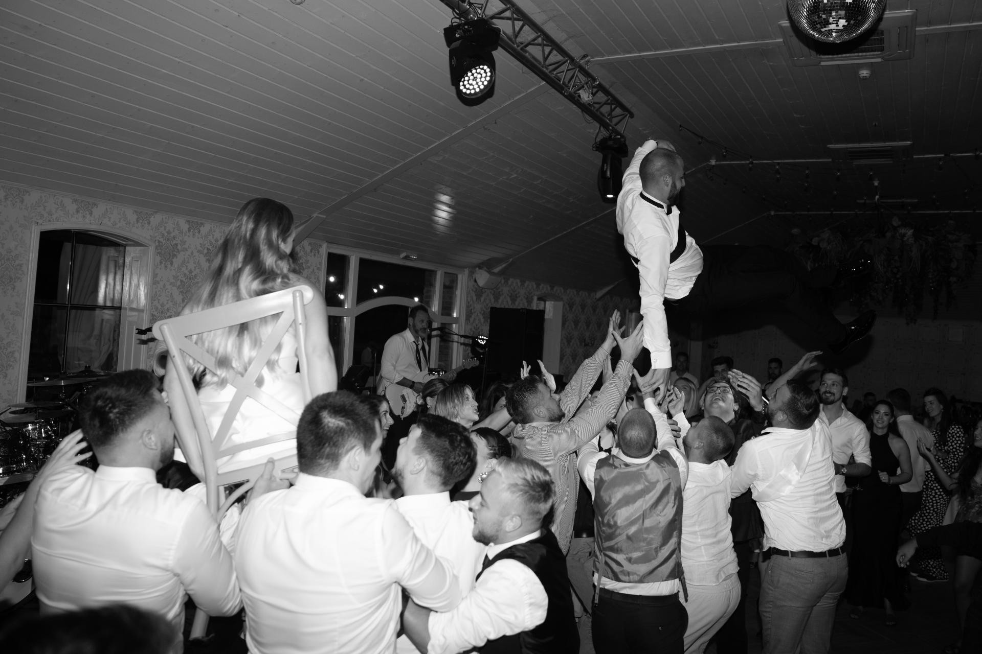 Nakon dirljive ceremonije slavlje se nastavilo u zagrebačkom Lidu, gdje su mladenci okupili čak 170 uzvanika. “Nama je bilo bitno da to bude dobar party i da se svi dobro zabave. Dan je ispao i bolji nego što smo zamišljali”, kažu uglas. Za dobru glazbu bio je zadužen bend Spice Grills, a atmosferu su dodatno podigli njihovi prijatelji Marcela Oroši i Faris Pinjo. Upravo je Pinjo, nakon prvog plesa, uživo otpjevao pjesmu “Kuća puna naroda”. "Meni osobno je to najljepša pjesma ikada napisana", priznaje Domagoj, kojeg publika poznaje po ulozi Dražena Petrovića u filmu "Dražen" te po nastupu u showu Tvoje lice zvuči poznato na Novoj TV.