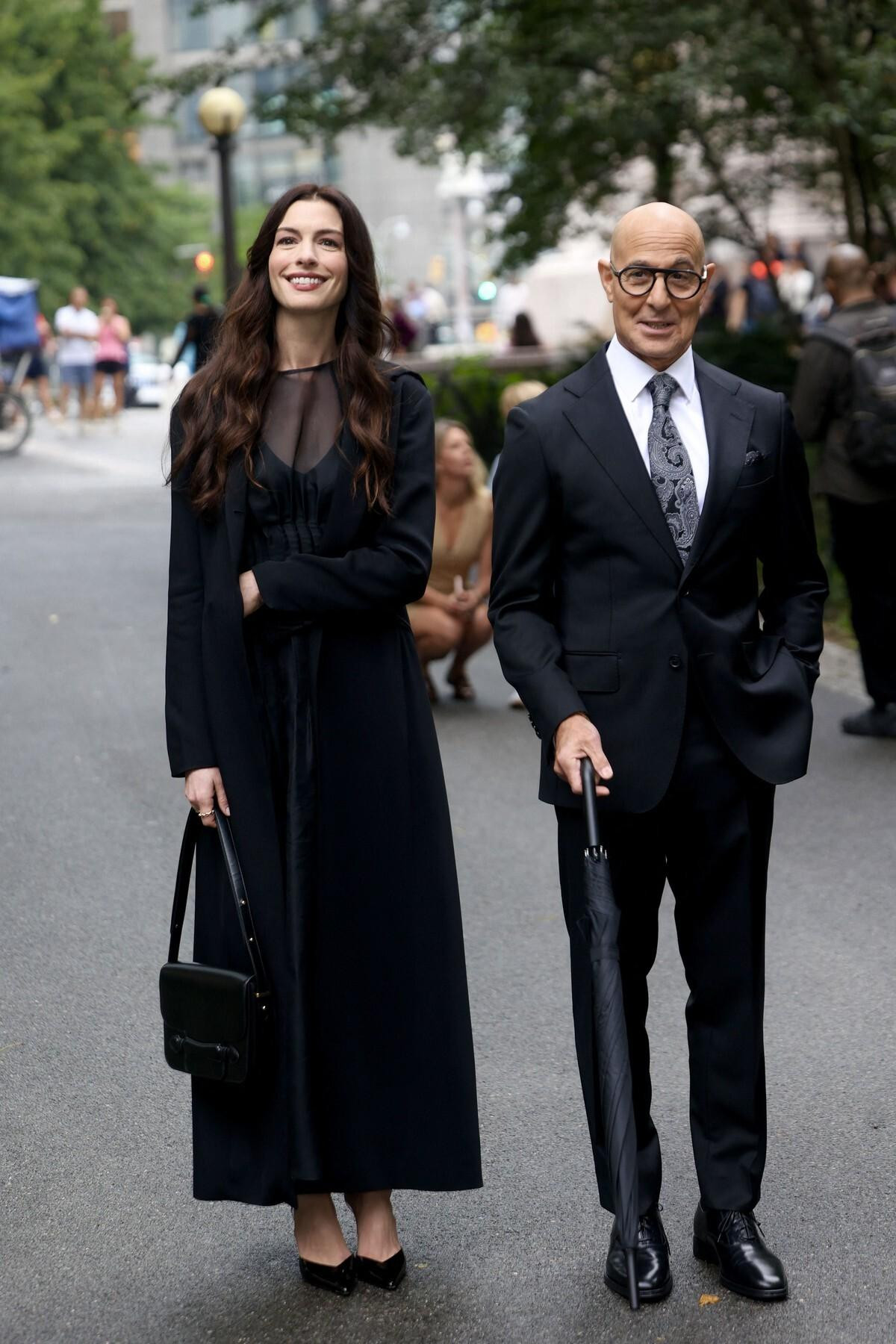 Na setu nastavka kultnog filma "Vrag nosi Pradu", Anne Hathaway (42) izgledala je kao da je upravo zakoračila iz nekog sasvim drugog blockbustera – možda iz "Viteza tame: Povratak" ili "Oceanovih osam", i to zahvaljujući svom zavodljivom, potpuno crnom outfitu.