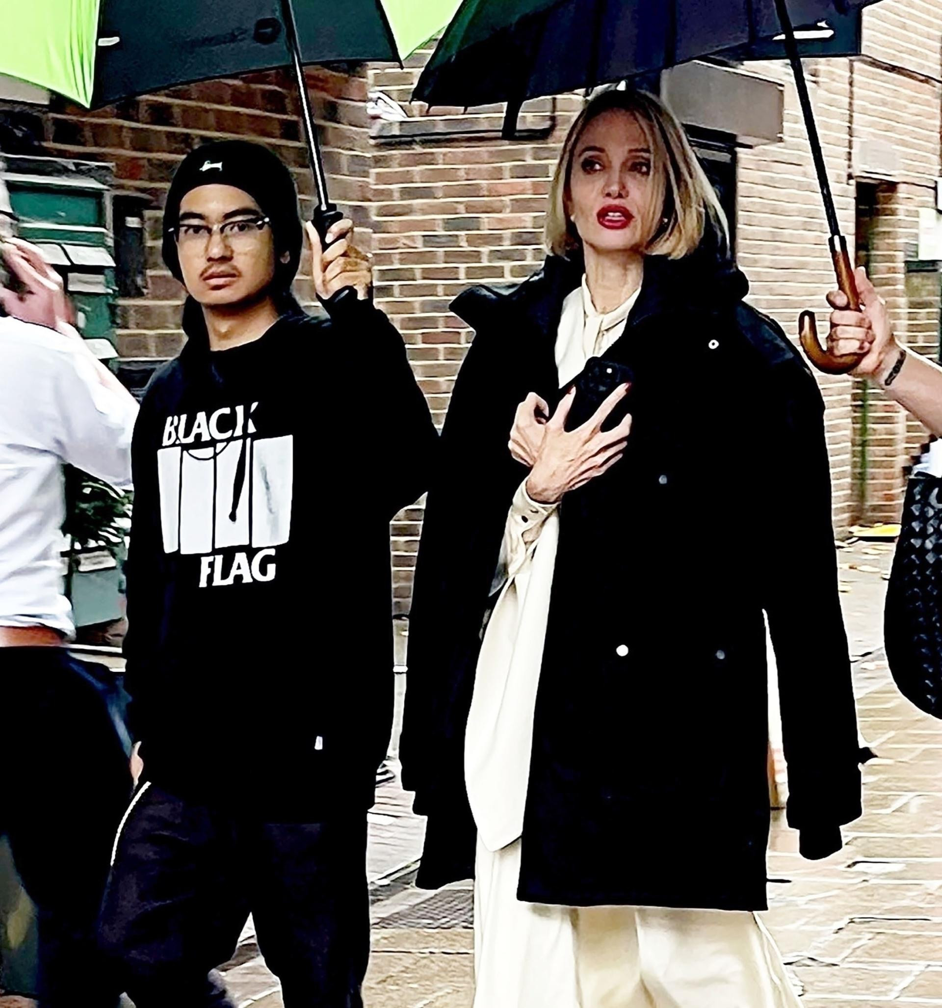Dojam nove Angelinine frizure pojačao je i njezin styling: bijeli pončo s pojasom preko svilene midi-haljine sa šalom, visoke potpetice boje bijele kave, veliki zlatni broš i jarko crveni ruž. Na snimanje je stigla sa sinom Maddoxom, a na setu će joj se uskoro pridružiti i Jason Segel te Aimee Lou Wood. Riječ je o drami temeljenoj na romanu autora Fredrika Backmana, čija je radnja smještena uoči Badnjaka, a Angelina glumi investicijsku bankaricu Zaru koja se nevoljko zatekne u društvu stranaca na razgledavanju stana, prije nego što se dogodi pljačka i talačka kriza u banci.