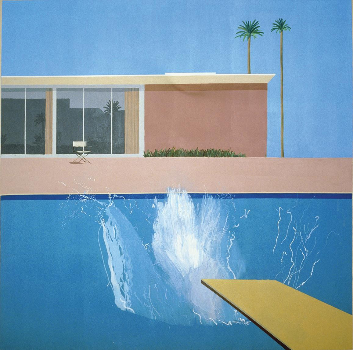 Upravo ondje 1967. nastaje "A Bigger Splash", jedna od njegovih najpoznatijih slika - dinamičan, gotovo stripovski kadar bazena, a u vodi je veliki pljusak koji je izazvao netko tko je očito skočio s daske. "Tko je skočio? Gdje je nestao?" pita se publika. Odgovor ne dobiva, ali u toj tišini nazire se čitava priča.