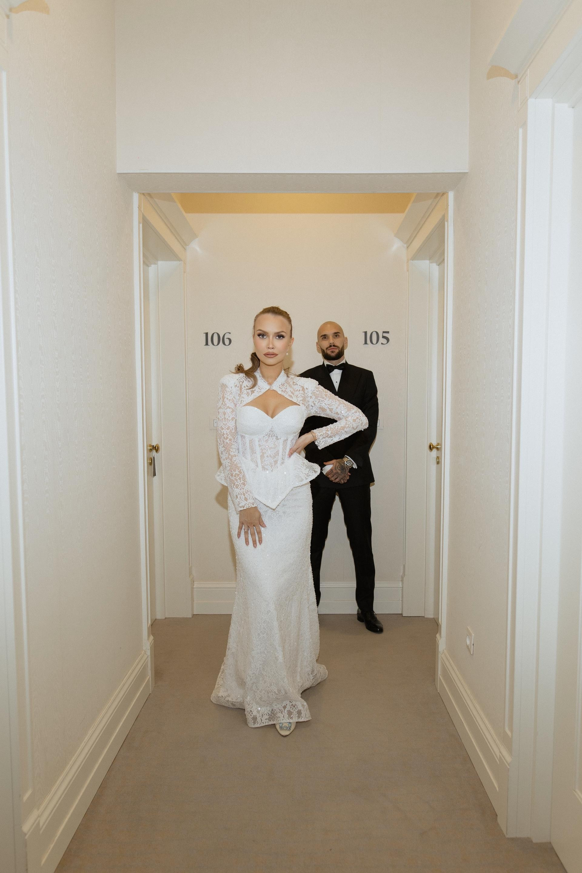 Ivona je blistala u dvije vjenčanice s potpisom njezina brenda Anovi. Sama ih je skicirala, dizajnirala i sudjelovala u izradi. "Prva svilena haljina bila je u stilu princeze, dok je druga bila izrađena od čipke, izuzetno ženstvena i elegantna s korzetom koji naglašava struk. Od nakita sam nosila decentne Chanel naušnice, a na nogama bijele Manolo Blahnik cipele. Anthony je nosio crno odijelo koje je bilo izrađeno posebno prema njegovim željama, a u unutrašnjosti sakoa imao je izvezena naša imena", otkriva Ivona.
