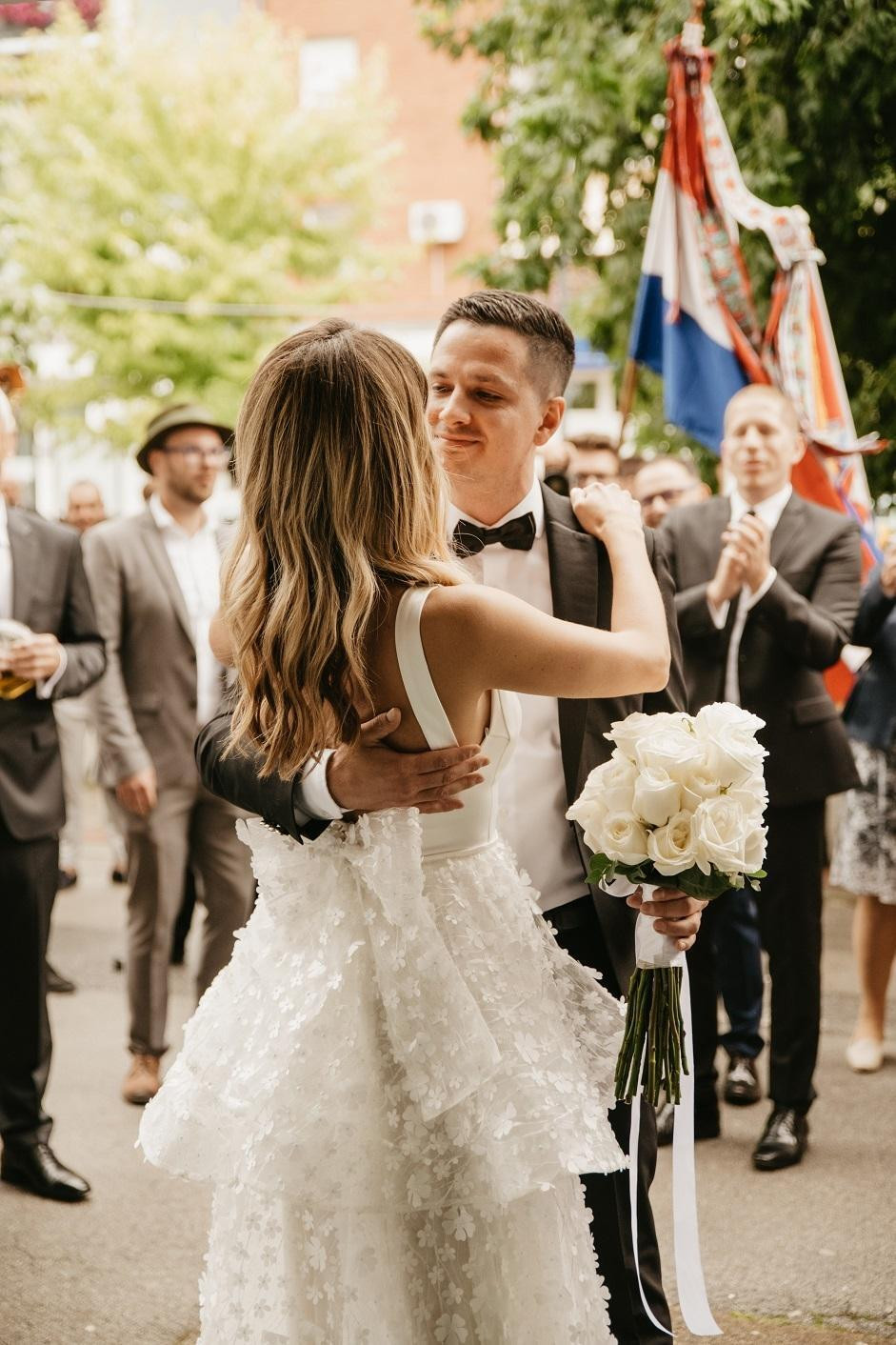 "Večera je, kažu mi, bila odlična, ali Ivan i ja gotovo ništa nismo jeli. Cijeli dan i noć bili smo u pokretu, ali uživali smo u svakoj sekundi", rekla nam je Ines koja je na svom posebnom danu zablistala u romantičnoj i lepršavoj vjenčanici domaćeg modnog dvojca eNVy room. Tu je vjenčanicu odabrala još godinu dana ranije, uoči pandemijskog lockdowna, i nije je željeno mijenjati ni nakon što su vjenčanje zbog mjera morali odgoditi.