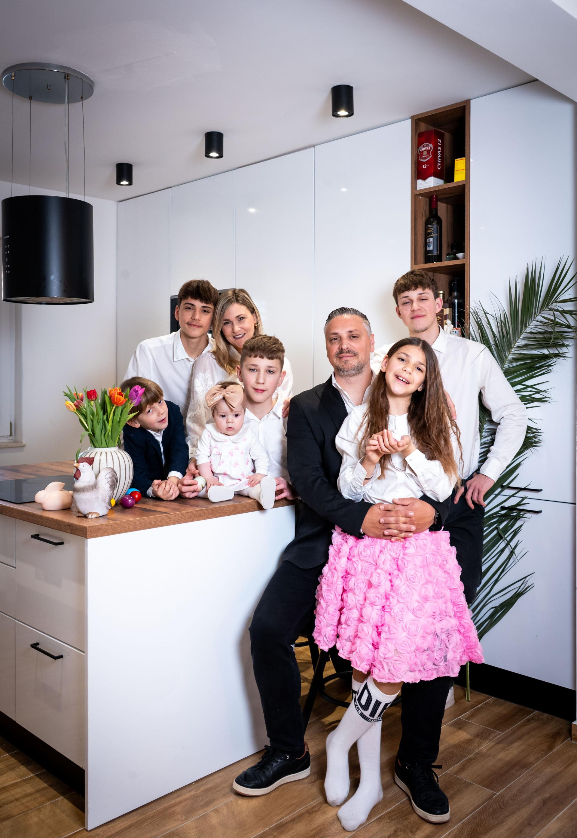 "Uskrs je za nas centar naše vjere. U Velikom tjednu pripremamo tijelo i dušu za uskrsno bdjenje, a na sam blagdan imamo obiteljski ručak kada se svi okupljamo u obiteljskoj kući u Sevidu nedaleko od Splita. Kod nas se poštuje tradicija bojanja jaja, što je posebno zabavno najmlađima. Blagdanski stol nezamisliv je bez janjetine i kapulice, sira, pršuta, francuske salate, kuhane šunke, sirnice i kolača. Teško mi je to reći, ali najljepše uskrsne ručkove smo imali kod punice koja nas je, nažalost, napustila prošle godine, pa se moramo priviknuti na malo drugačije blagdane i život bez nje. Sada se oko blagdanskog stola uključimo svi, ja sam oduvijek bio zadužen za riblje specijalitete, a supruga voli pripremati mesna jela, čak i naša veća djeca vole spremati francusku salatu i pomoći oko ukrašavanja. Uoči Uskrsa nastojimo postiti od petka, a naš slatki ritual je da svake godine djeci sakrijemo košaru iznenađenja te je oni traže zagonetkama", govori splitski glazbenik Petar Dragojević (46), koji nas je ugostio u svojem splitskom domu. I premda blagdani uvijek donose posebnu radost i uzbuđenje, uz suprugu Andreu i njihovo šestero djece - četvorica su sinovi, David (17), Emanuel (15), Jona (13) i Noah (6), te dvije kćeri, Debora Marija (11) i sedmomjesečna Teresa - baš nikada ne nedostaje živosti, smijeha i topline obiteljskog zajedništva.