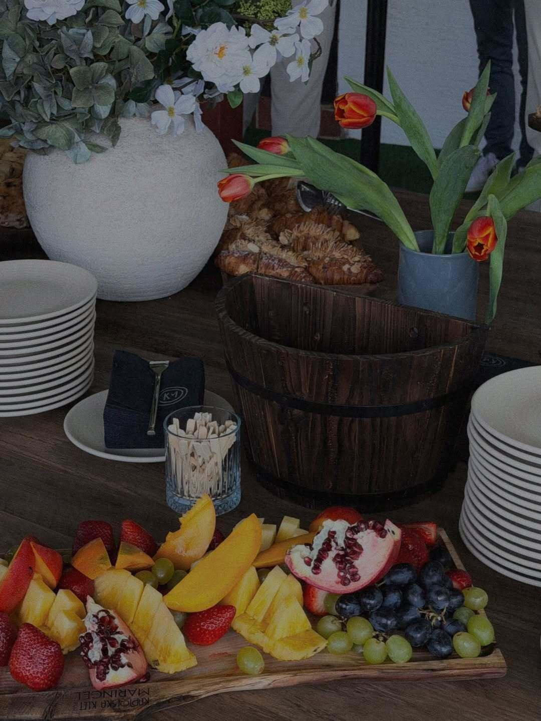 Hrana je bila u brunch stilu, na meniju su se našli kroasani i sendviči iz Boogie Laba, svježe voće i veganske štrudle, a kasnije su se na licu mjesta radile i pizze i palačinke te posebna torta. "Torta je bila veganska iz Vis à Vis by Vincek i stvarno je bila odlična, i prvi put da se cijela zapravo pojela", zadovoljna je Petra.