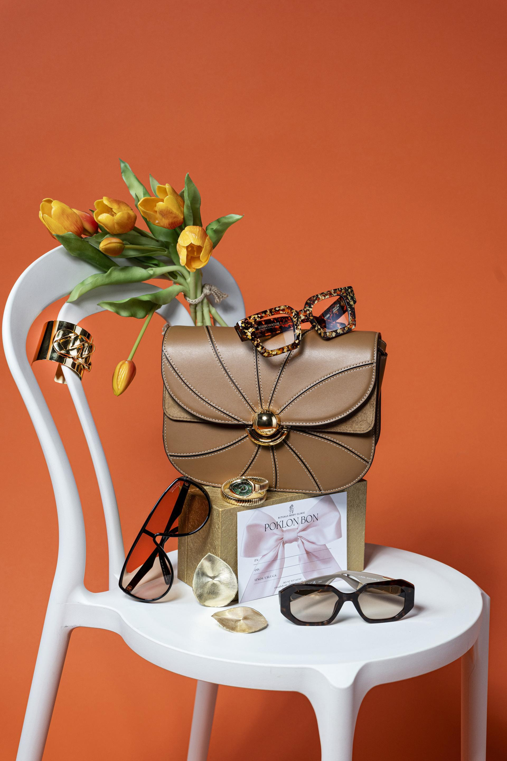 Buket tulipana Naš dom, 14.90 €/ Narukvica Dellure, 160,70 €/ Dioptrijski okvir Robert La Roche,Optoteka, 480 €/ Torba Furla, 509,83 €/ Sunčane naočale Tom Ford. Mibo optika, 550 €/ Naušnice Prahir, 297,40 €/ Ženski sat Just Cavalli, HETA 1892, 275 €/ Poklon bon, Rituals body clinic